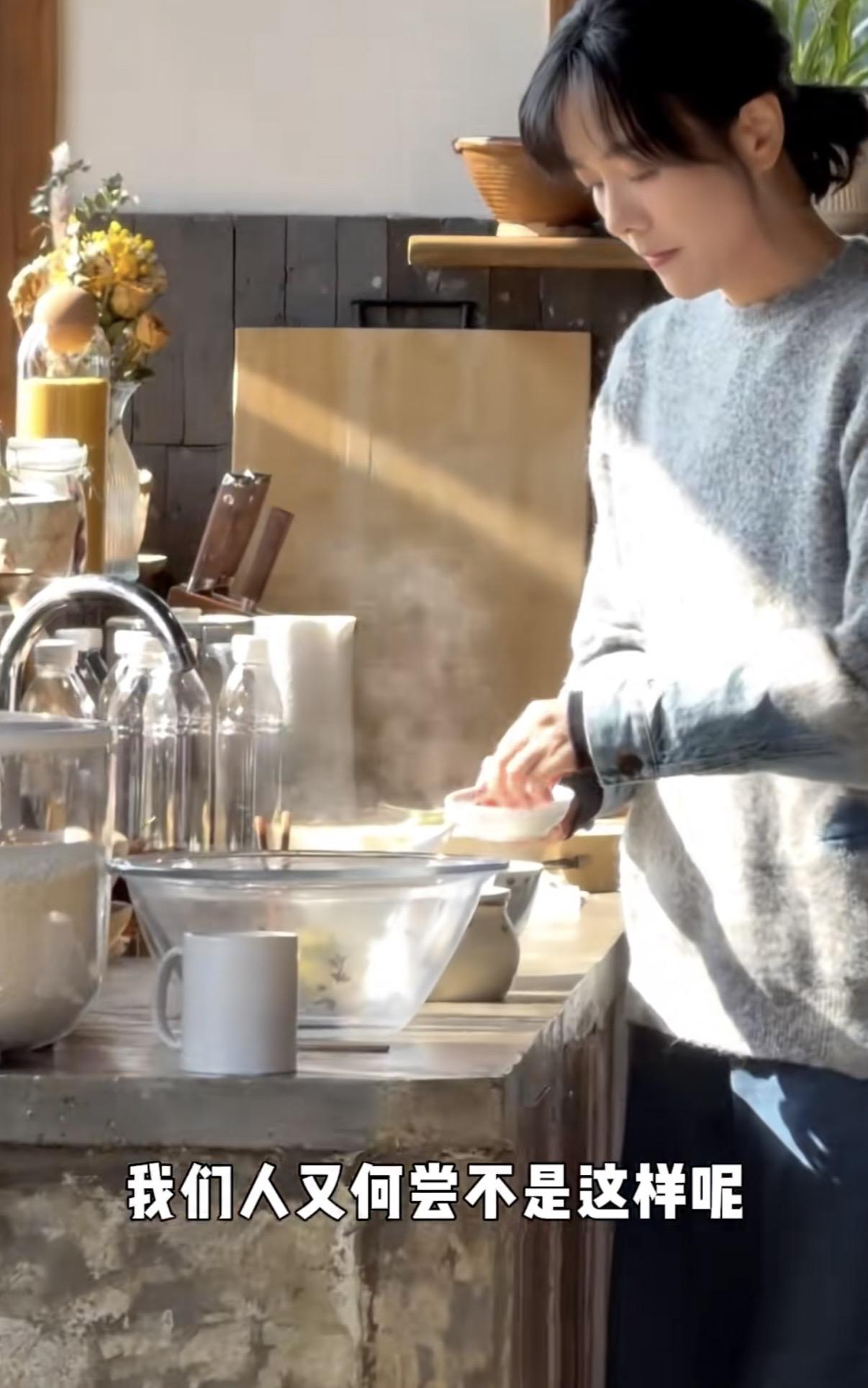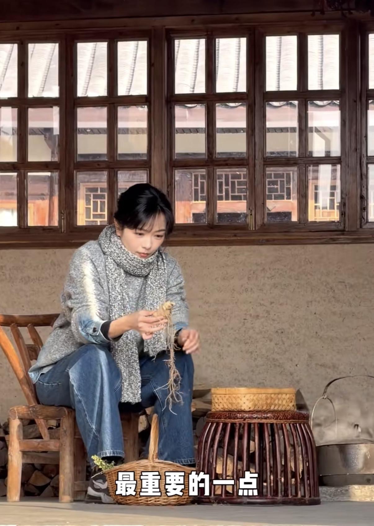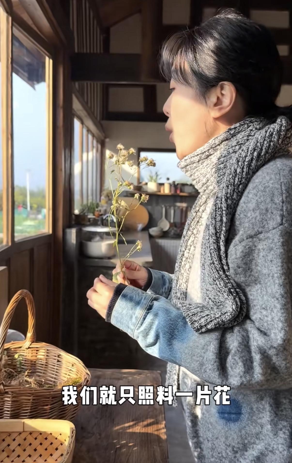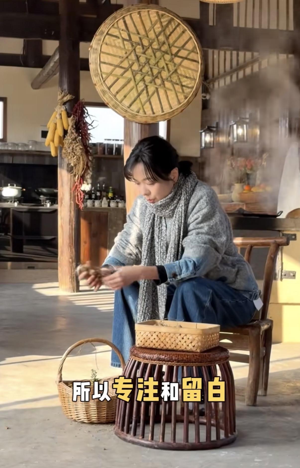 不僅能自己燒火做飯、養花餵鴨、還能坐下來和自己進行一場靈魂的對話。亦或者忙着紡線、摘菜,料理生活所需。