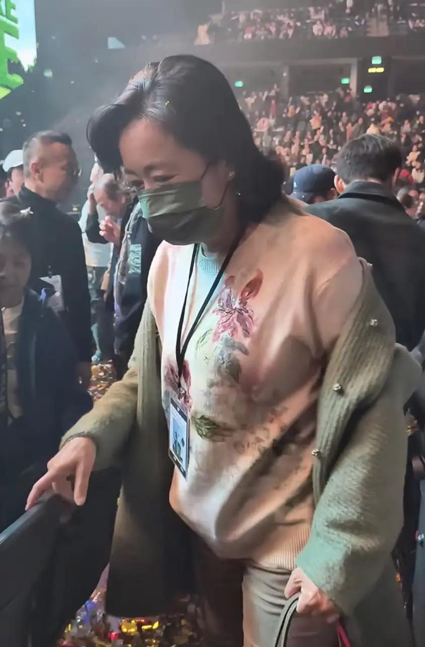 兩人一起看演唱會,朱玲玲的打扮很低調,她氣質很好、戴着口罩也掩不住貴氣。在人羣中,還是非常醒目的,尤其是老公和兒子都陪在身邊。