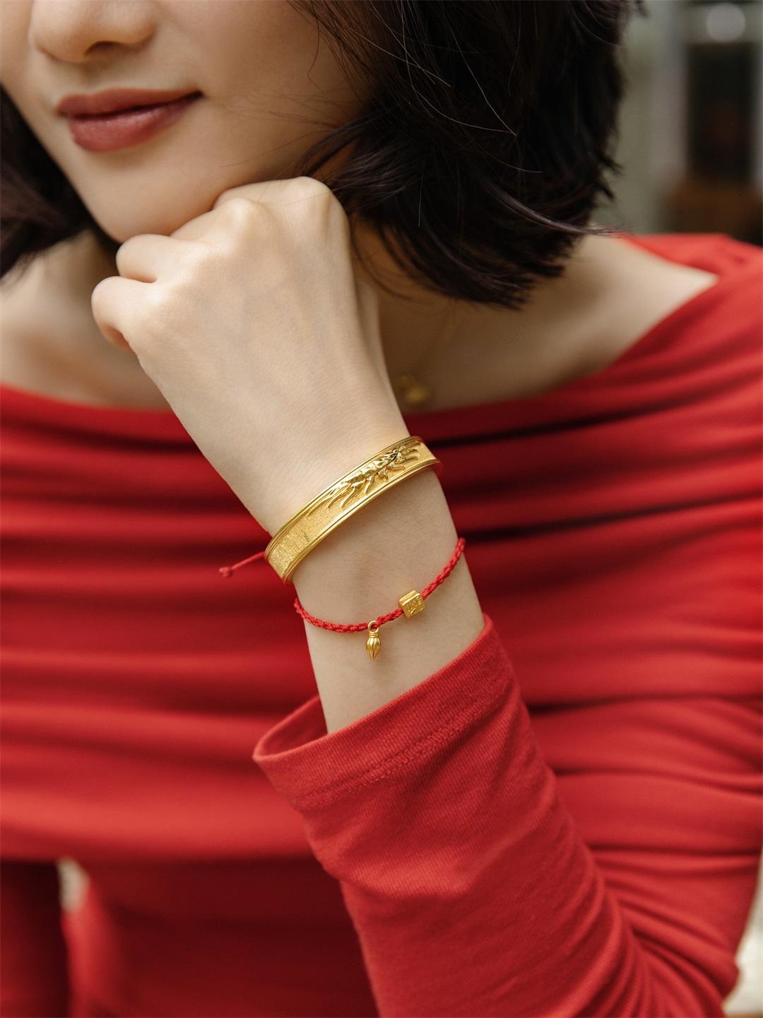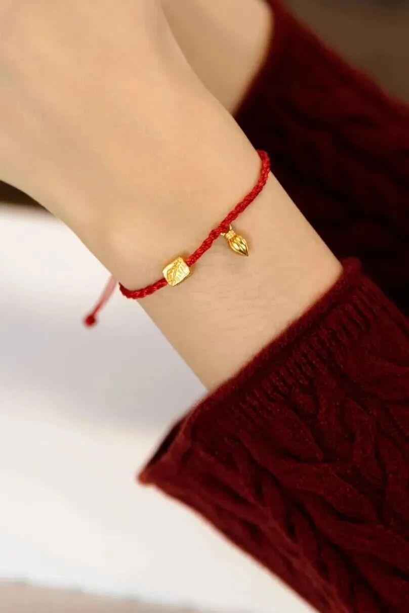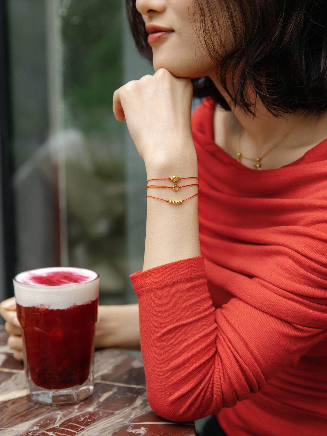 紅繩本身也充滿手作溫度,手工搓制加上金棉線編織,紋理細膩有質感,日常戴也好看不突兀。▼