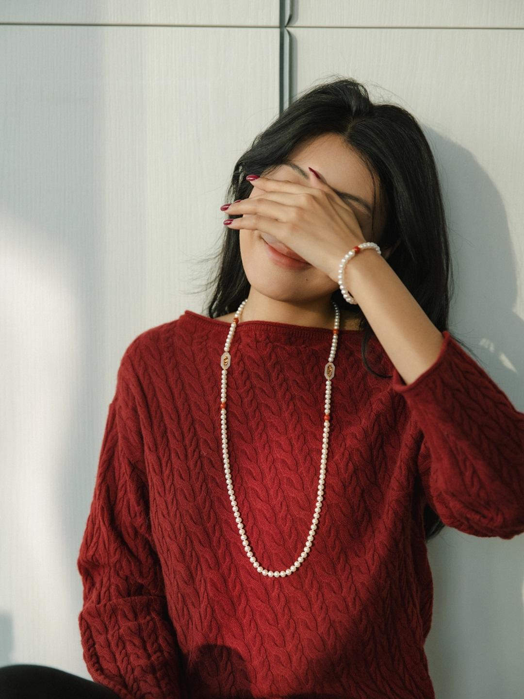 除了應景的紅色系配飾,其實珍珠和過年的氛圍也格外搭,寓意新的一年:溫潤如珠,幸福圓滿。▼