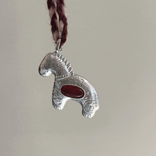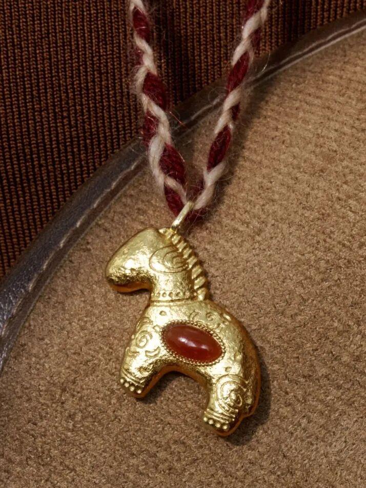 小馬中間鑲嵌了一顆天然紅瑪瑙,不僅是過年的一抹亮色,更寓意“鴻運當頭、招財納福”。