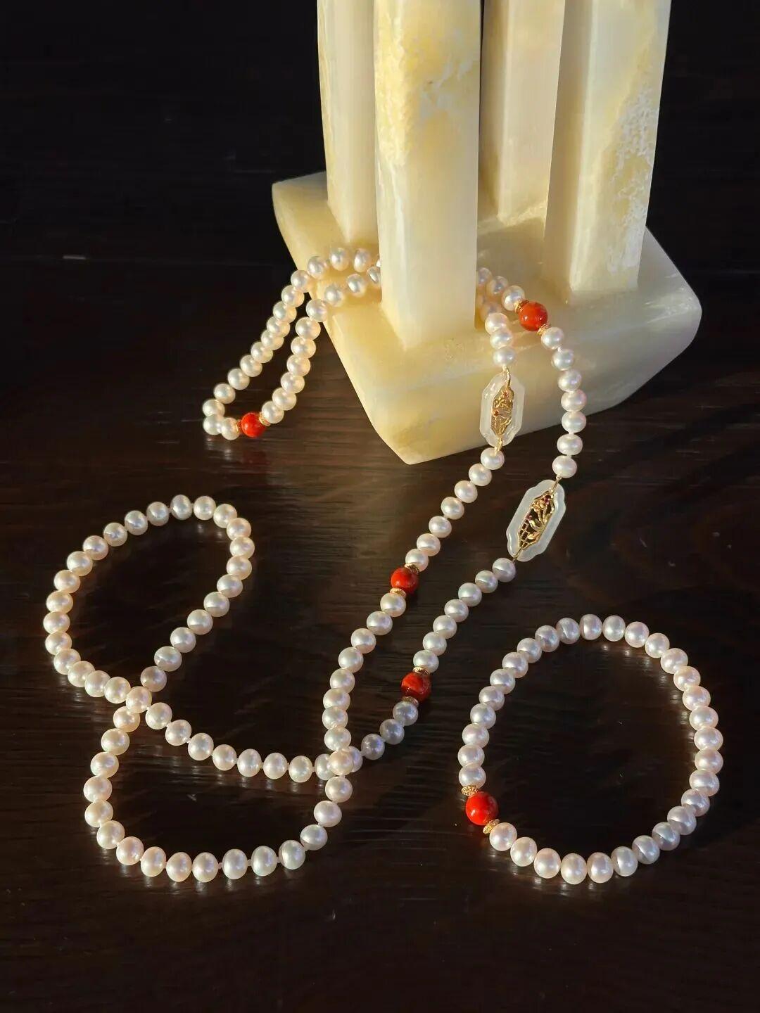 南紅+珍珠這個組合,自帶“紅運當頭、珠圓玉潤”的好彩頭,送人特別討喜。