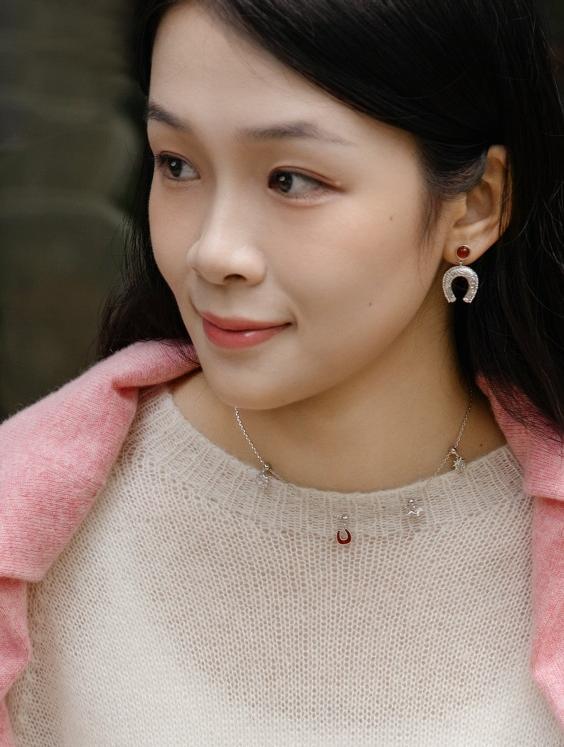 征途紅瑪瑙馬蹄耳環