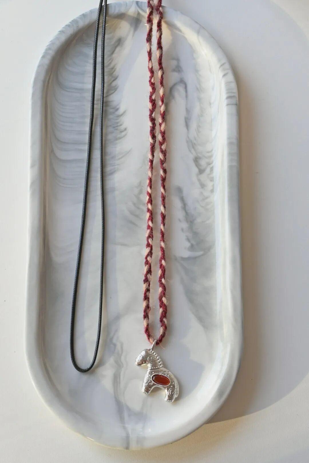 到手一共有兩條穿繩:一條美麗奴羊毛編繩+一條質感皮繩,相當於一次擁有兩條不同風格的毛衣鏈。▼