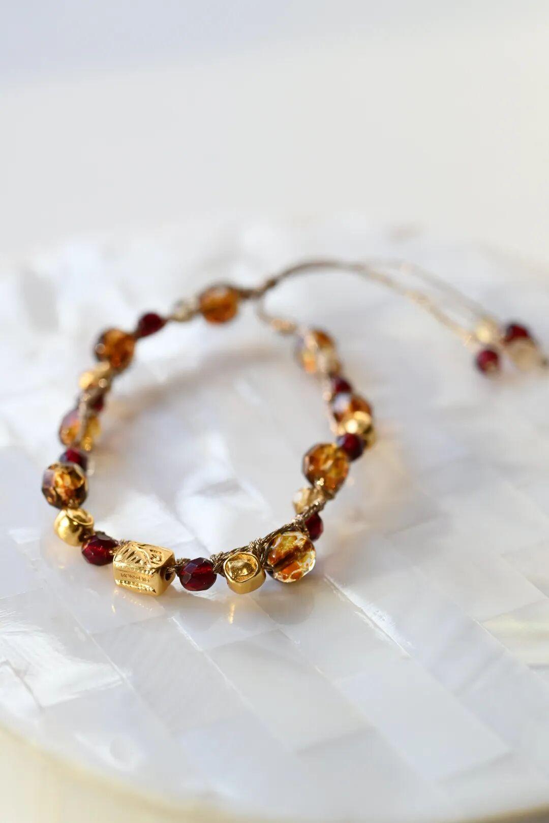 捷克琉璃珠的透亮,碰撞天然石的溫潤,細細碎碎的光澤在腕間流轉,就像節日裏閃爍的彩燈,悄悄點亮一身搭配,也點亮心情~