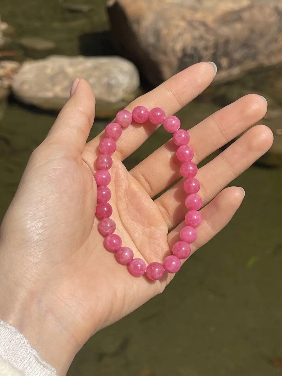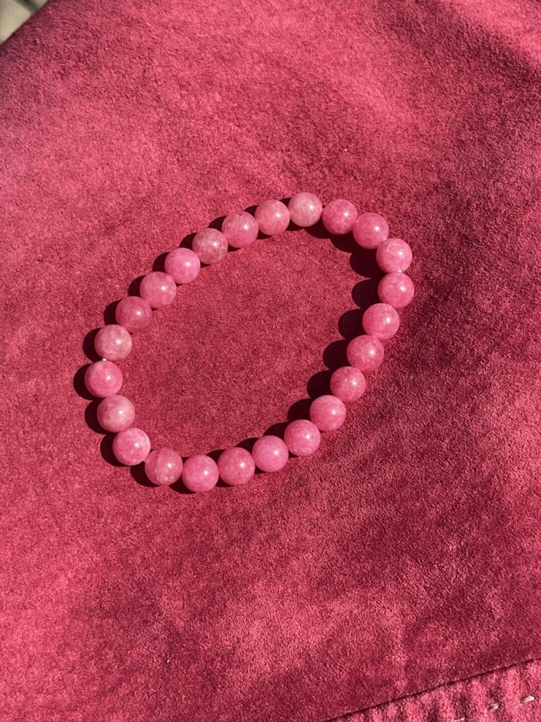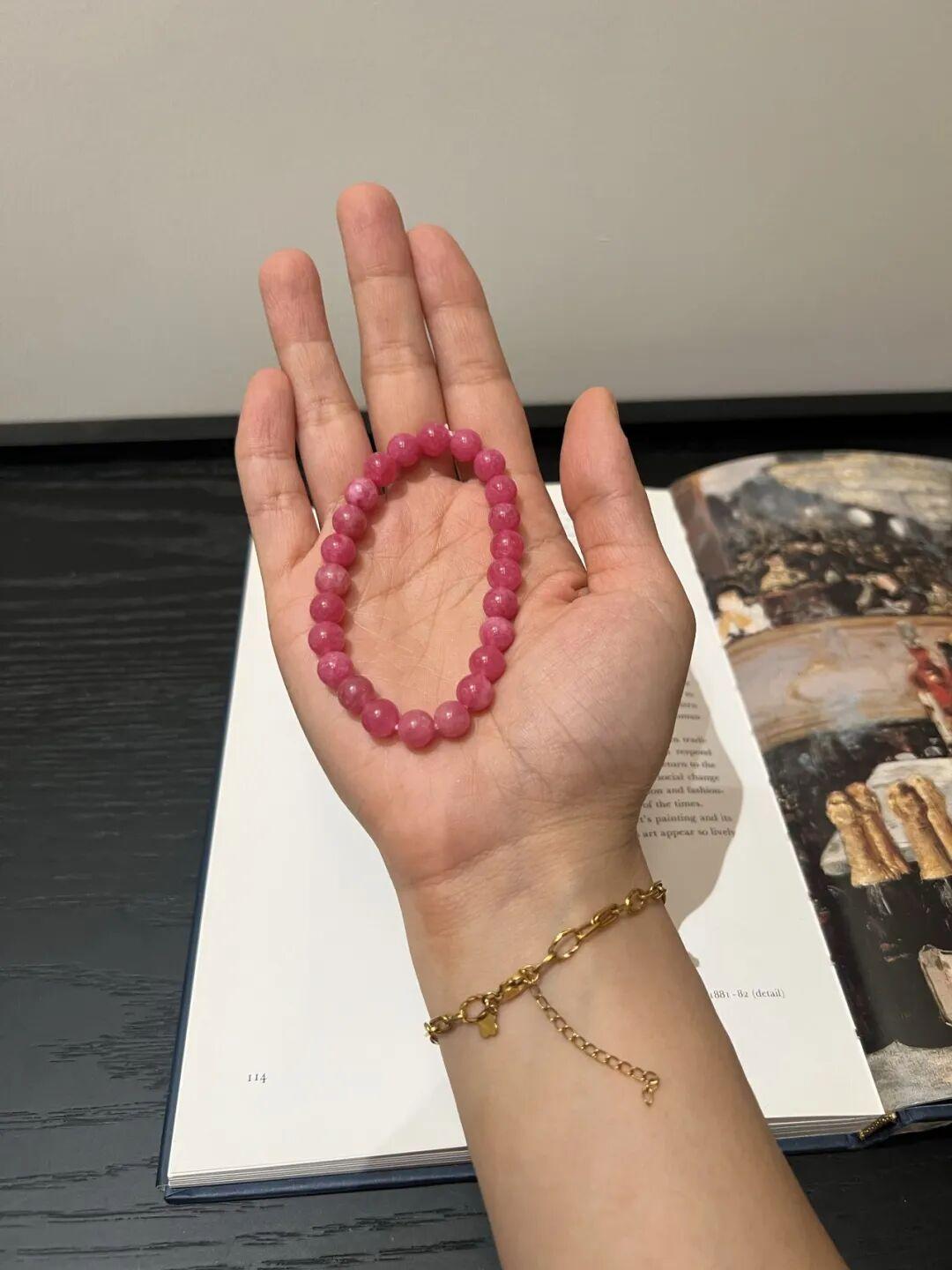 這串薔薇輝石的顏色,是那種讓人一眼淪陷的玫瑰粉,溫柔裏透出幾分明媚。