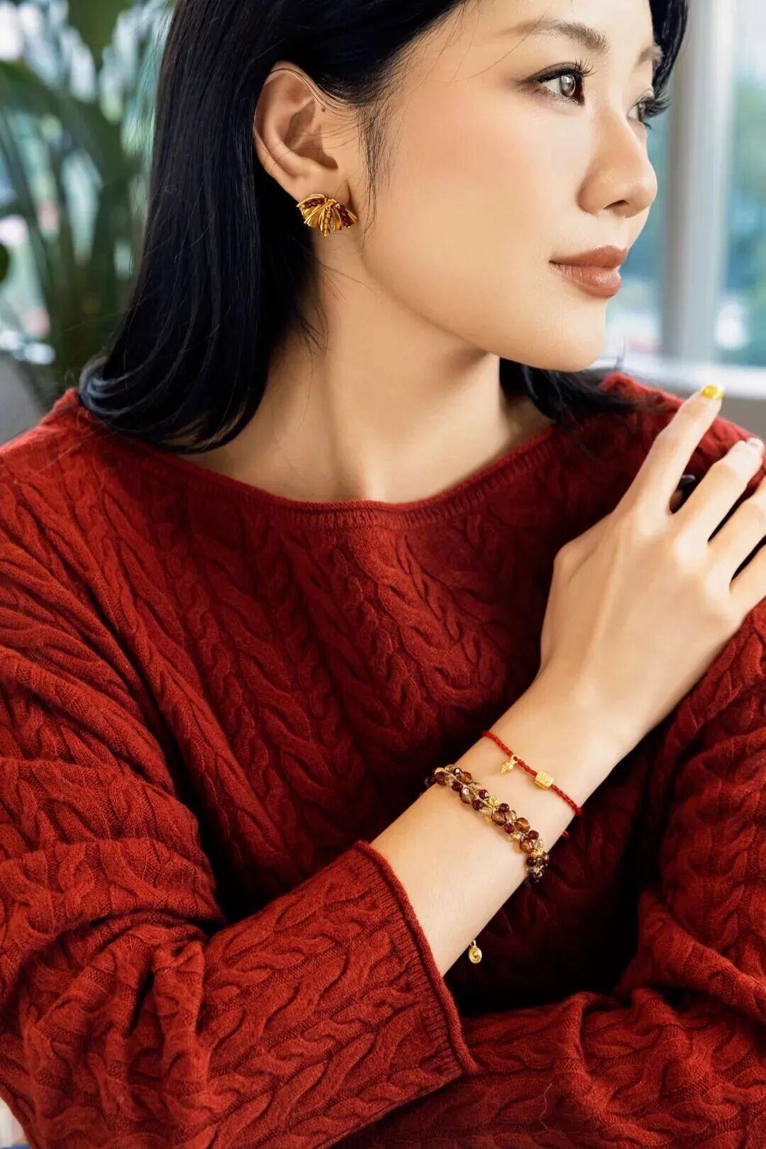 相比之下,紅色首飾可太友好了!一點點紅好駕馭,還能瞬間給穿搭“提鮮”,也給新年討一個“開門紅”的好彩頭。▼