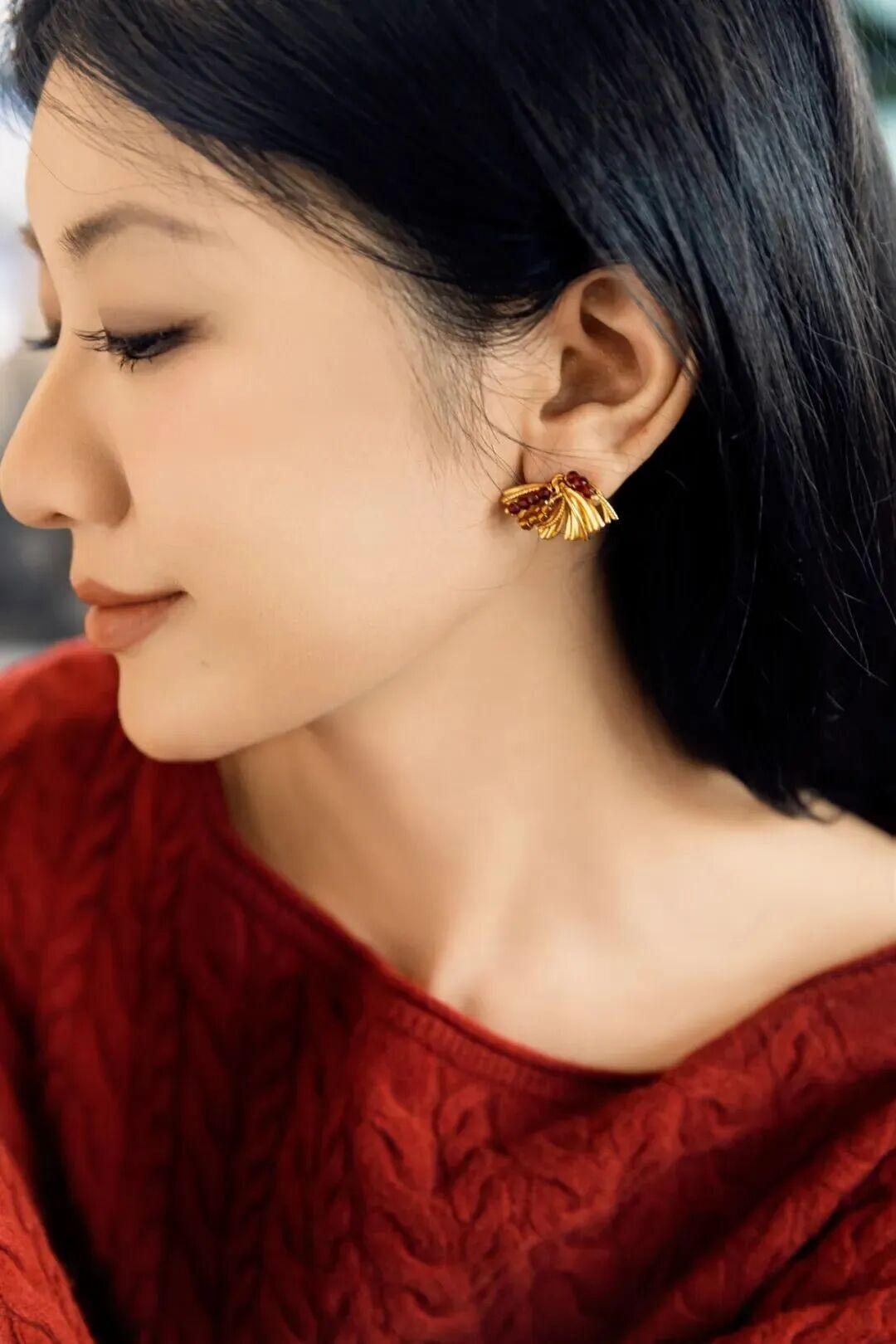 我去年就特別愛戴紅色耳環,越靠近臉,越能把紅潤感“反”到臉上~