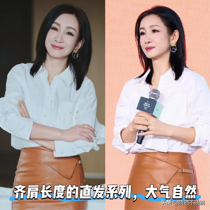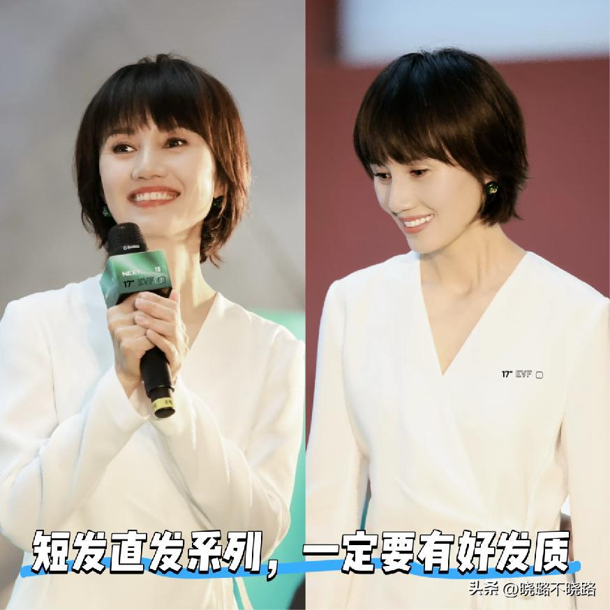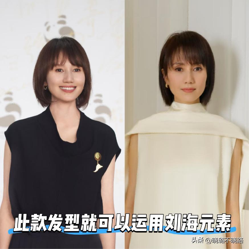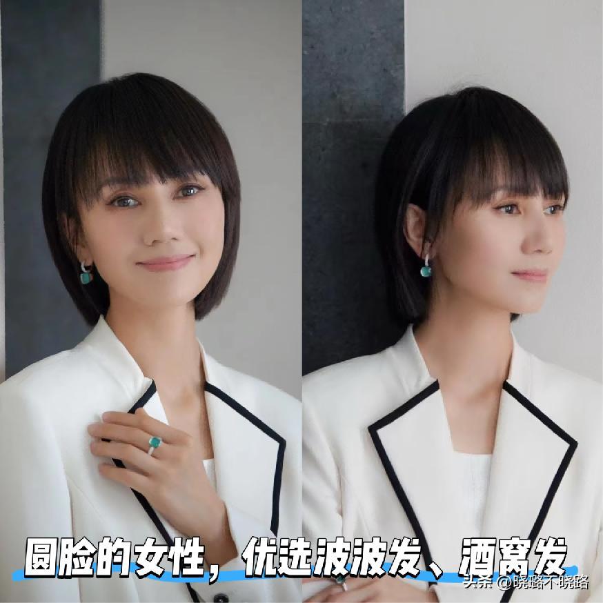 但如果是圓臉的長相,那麼其實在上了年紀之後,直髮的簡約利落會更加的適合你一些,如果你是屬於像袁泉這樣的臉型狀態,那麼推薦大家可以首選運用Bobo發或者是酒窩發這一類。這樣短款的直髮給人的感覺就會更加提升利落高級的氣質一些,而且幾乎對於臉型是沒有任何的限制,都可以將其進行運用。