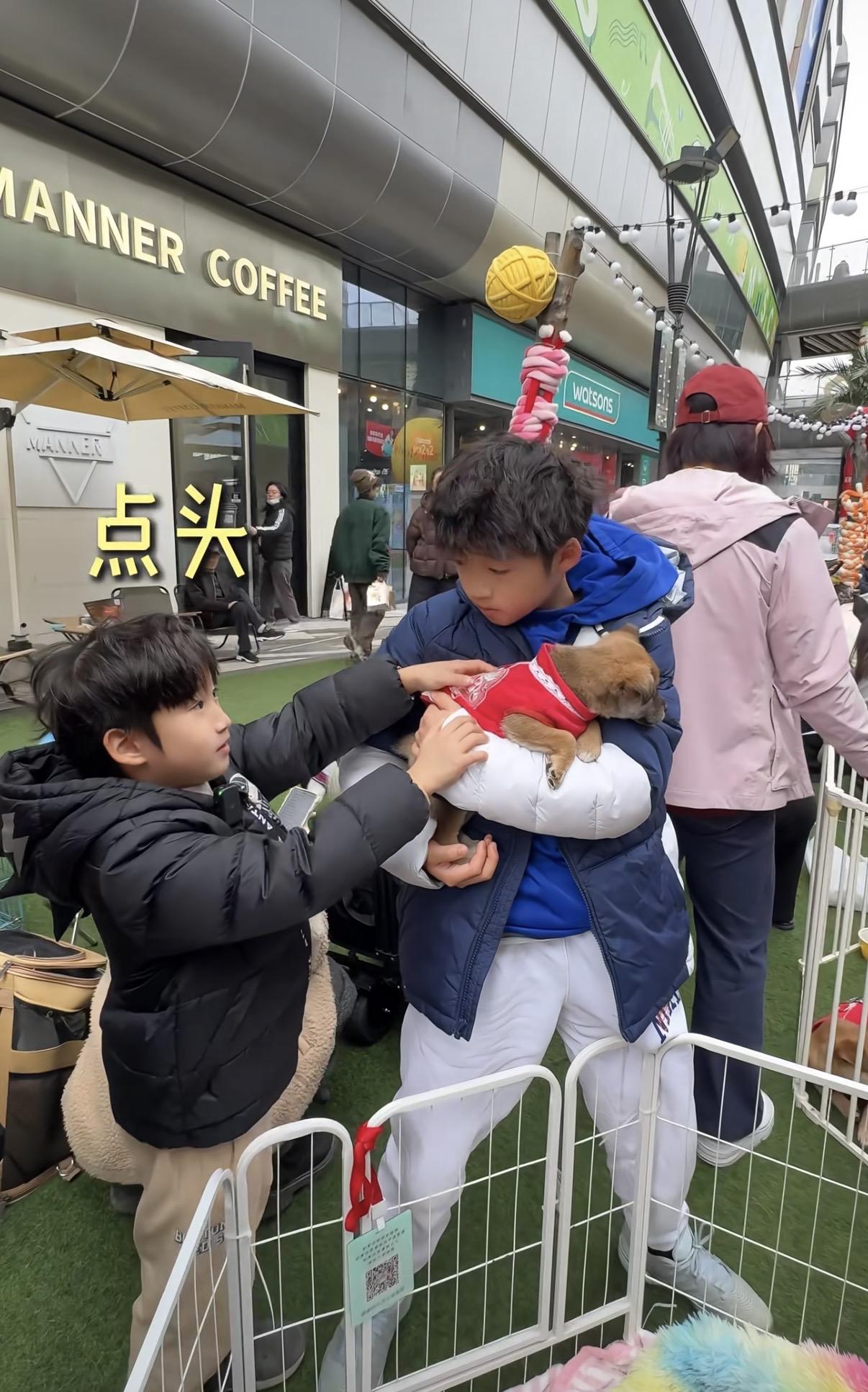 因爲兒子想要養一隻小狗狗,網友建議冉瑩穎與其購買不如領養。於是她帶着二兒子和三兒子來到了領養市場。