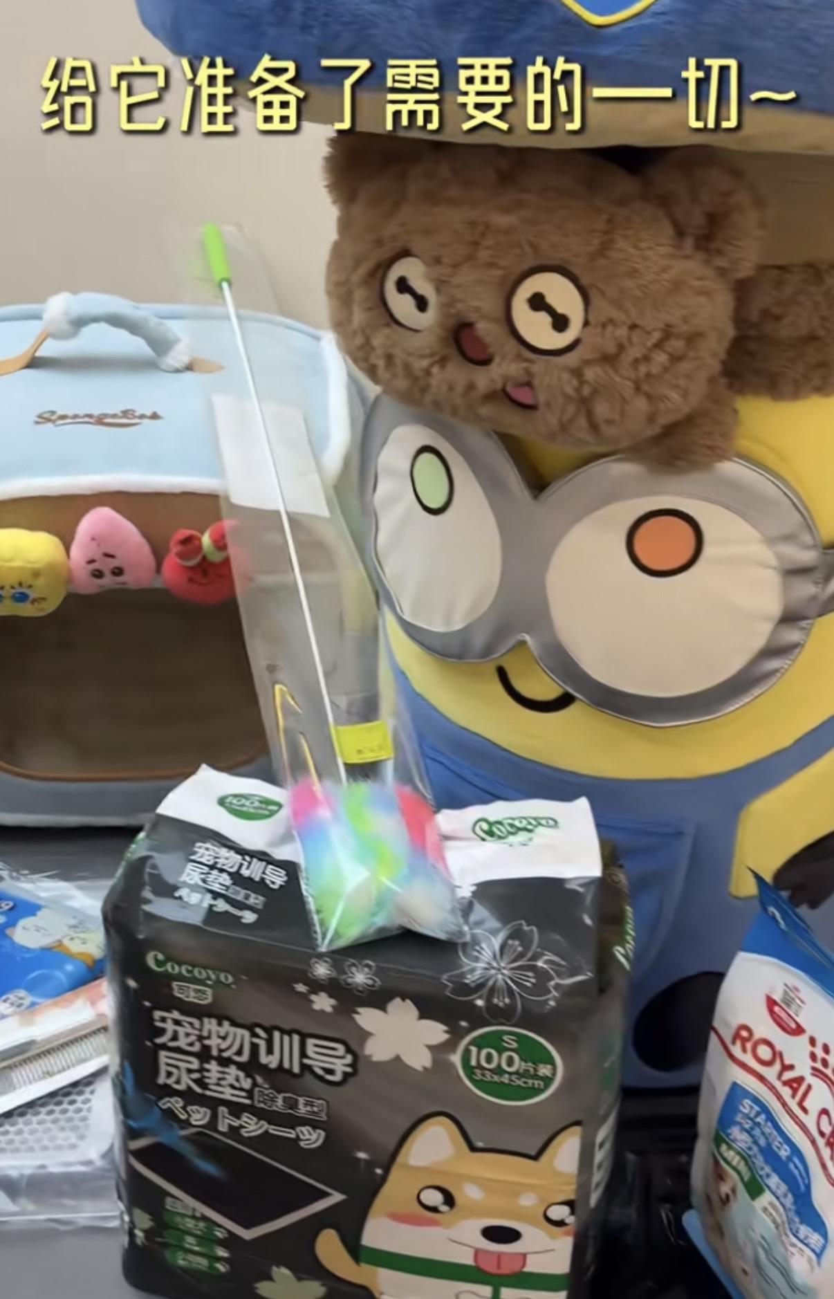 很快母子三人就準備好了狗狗需要的一切,有可愛的小衣服、還有狗狗玩具、好喫的狗糧、訓導尿墊、以及軟軟的狗窩。