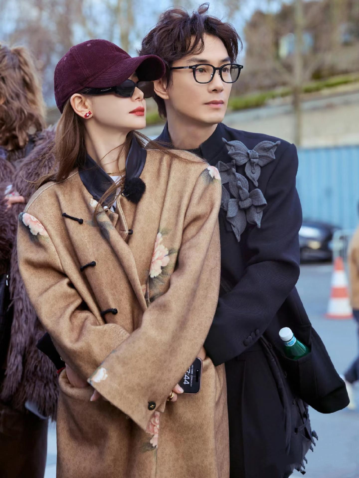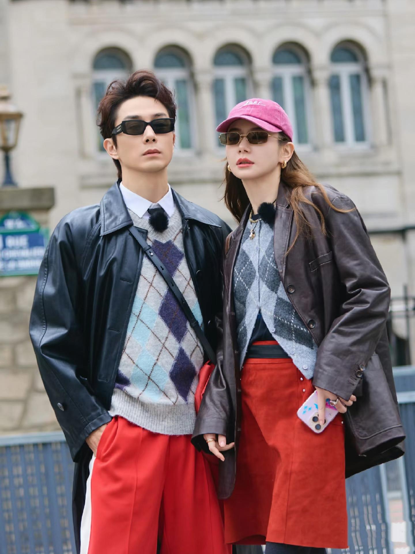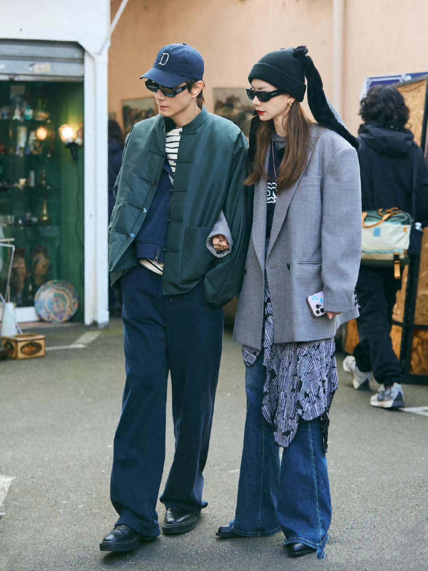 當李承鉉的外套與戚薇的裙裝行程撞色,這視覺上的呼應一點都不凌亂。兩人戴同款墨鏡,潮流洋氣很拉風。