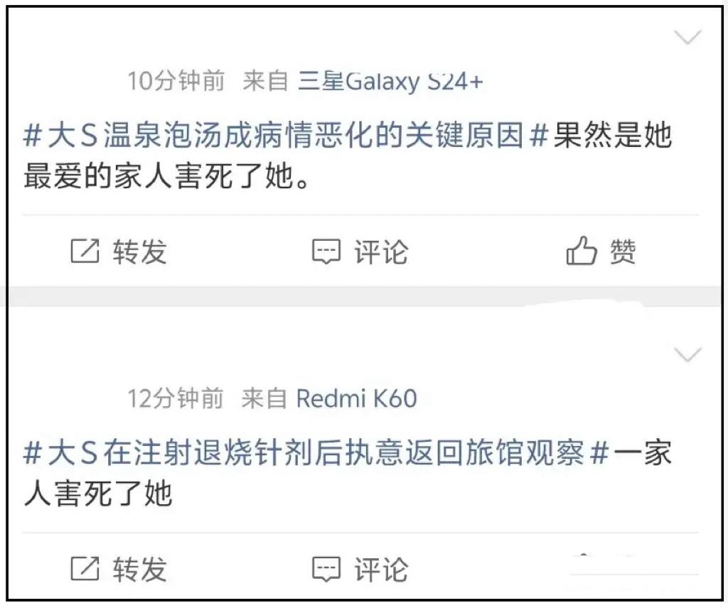 網友紛紛表示:難道沒有及時去醫院搶救的鍋最後甩給了她本人嗎?是大S主張不去醫院,想要回家,在去機場的路上心臟驟停,不是把責任推給她自己嗎?