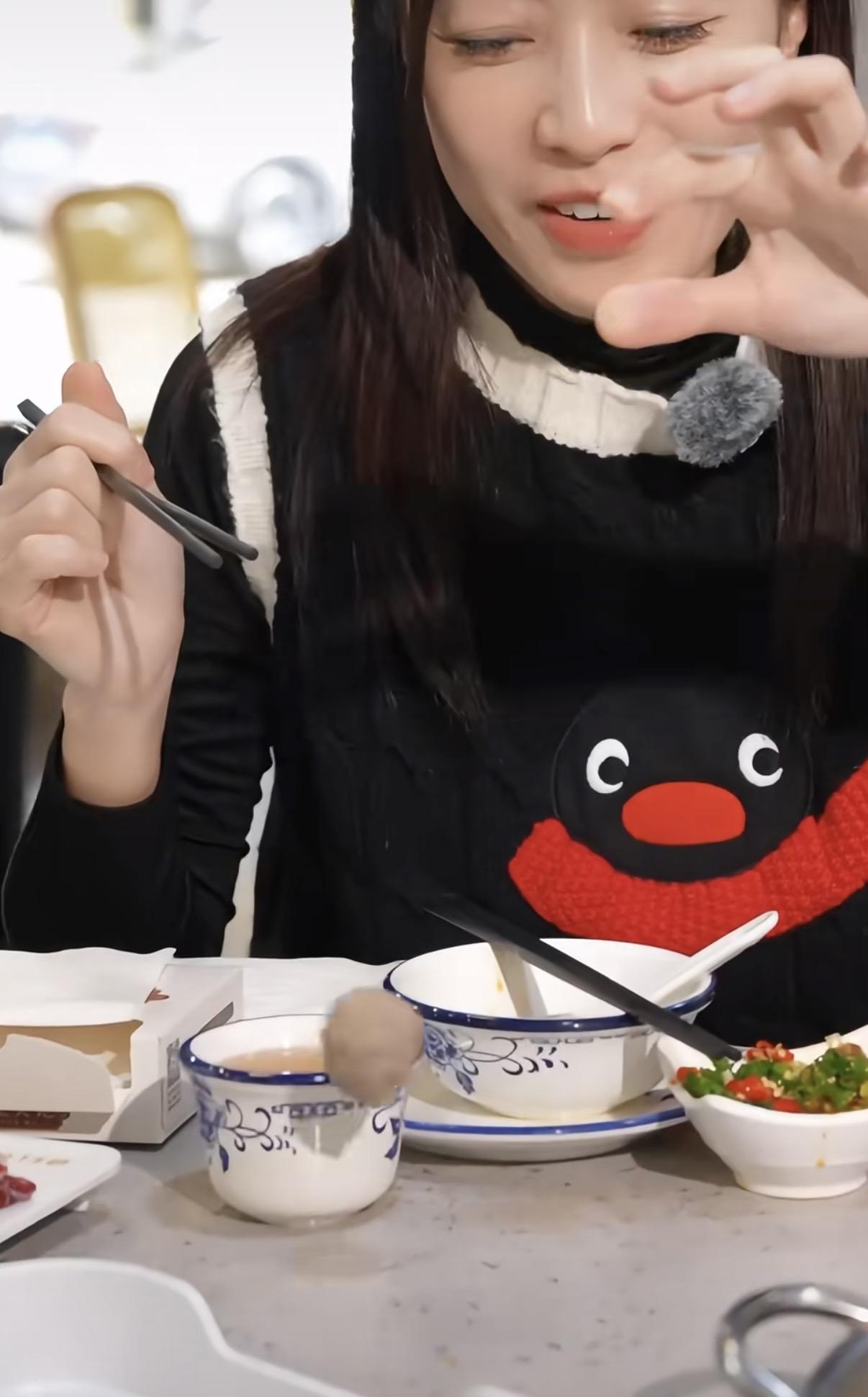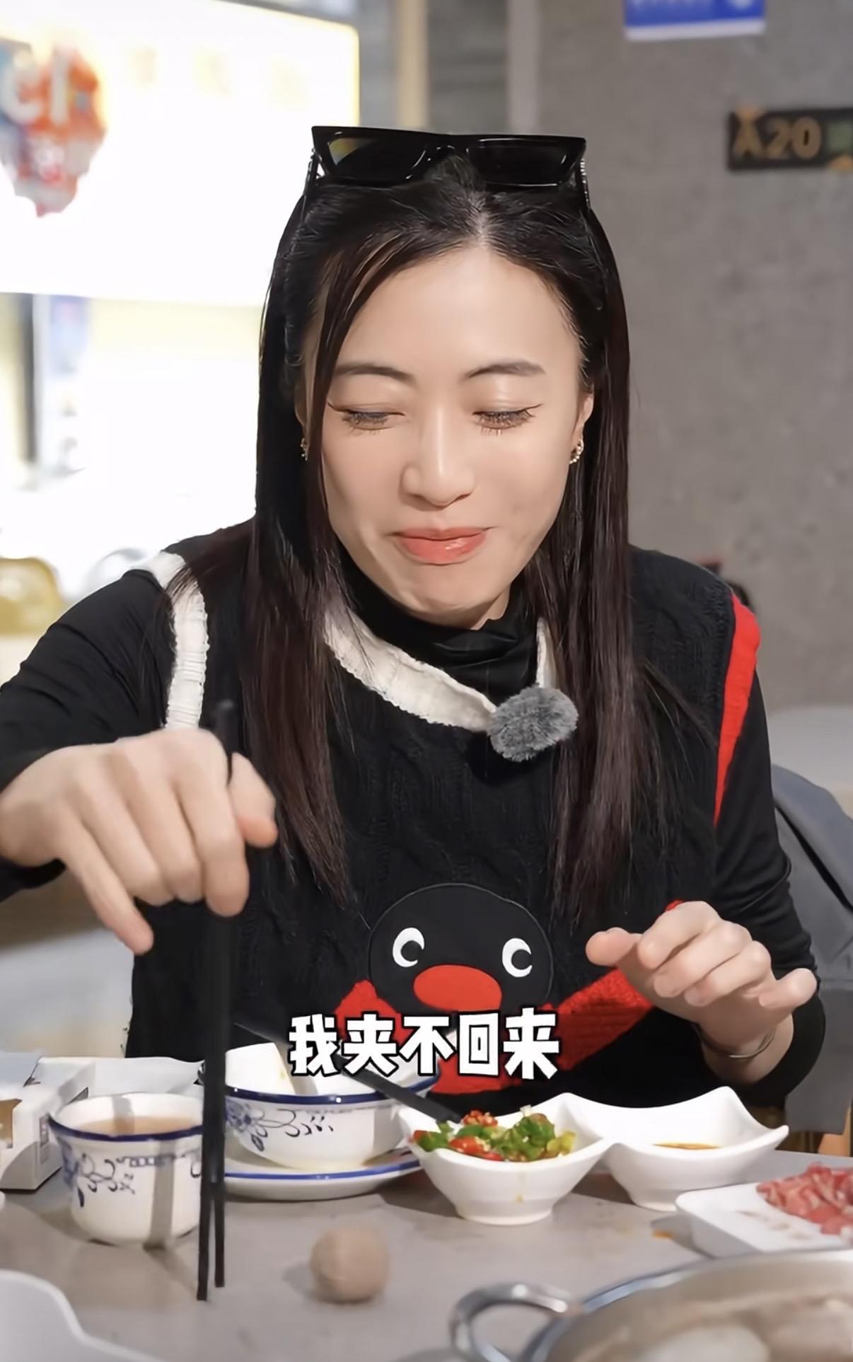 甘比來到一家不是很大的火鍋店,她穿着寬鬆的牛仔外套、闊腿褲,身邊沒有隨行人員。一個人喫火鍋,大劉也沒有陪着。