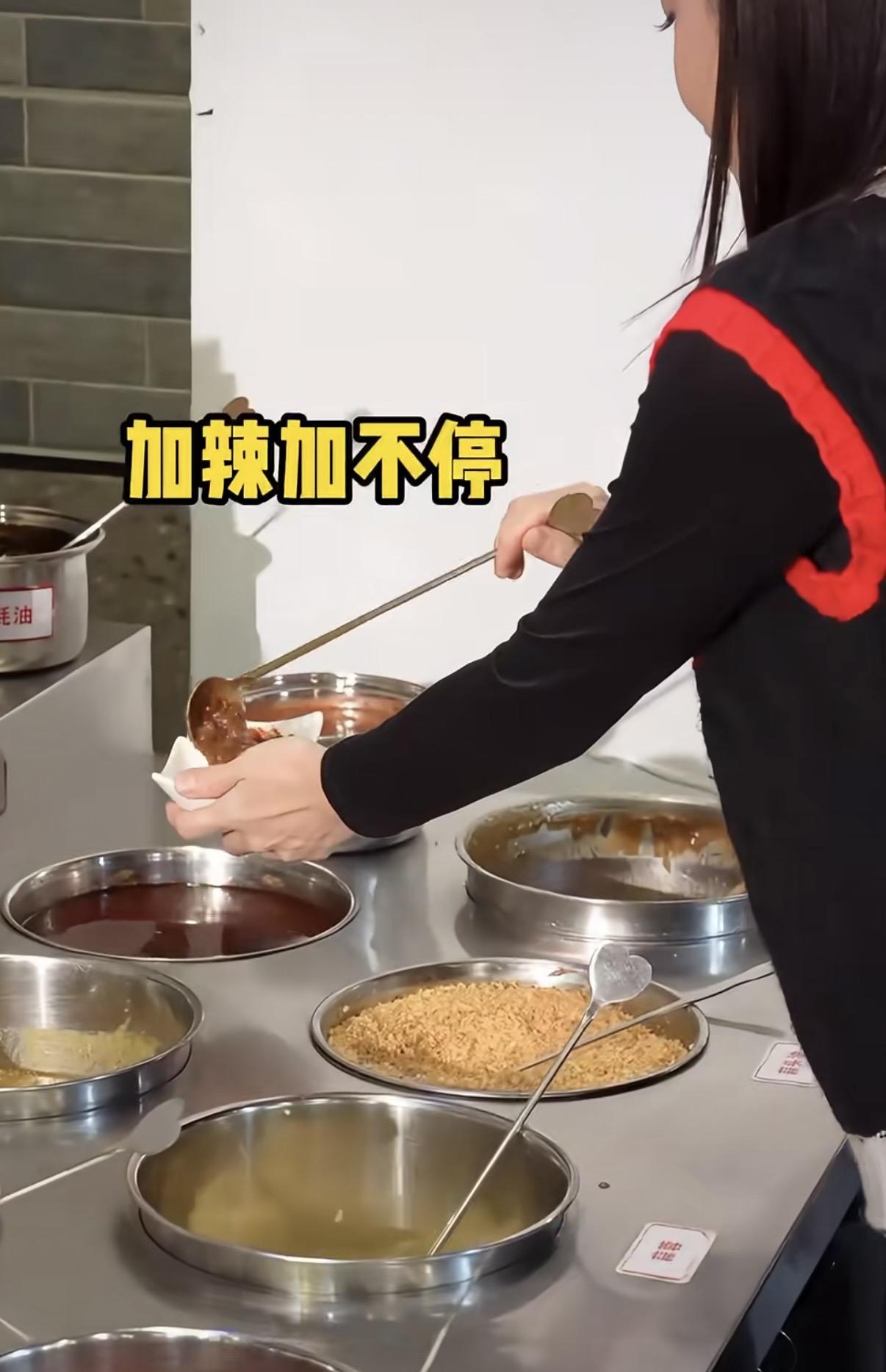蘸料是自己添加的,沒想到甘比這麼喜歡喫辣,只見她加了滿滿一大勺的辣醬,還有切成碎的辣椒圈。