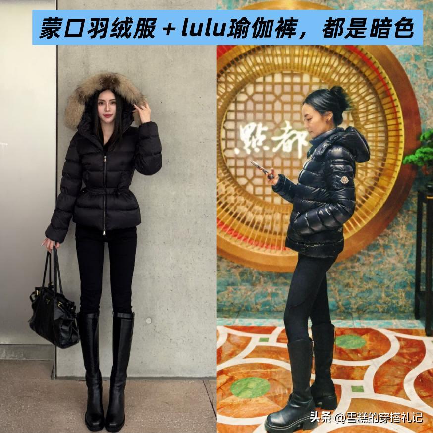 二、蒙口羽絨服+lulu瑜伽褲的組合↣顯瘦、顯好身材