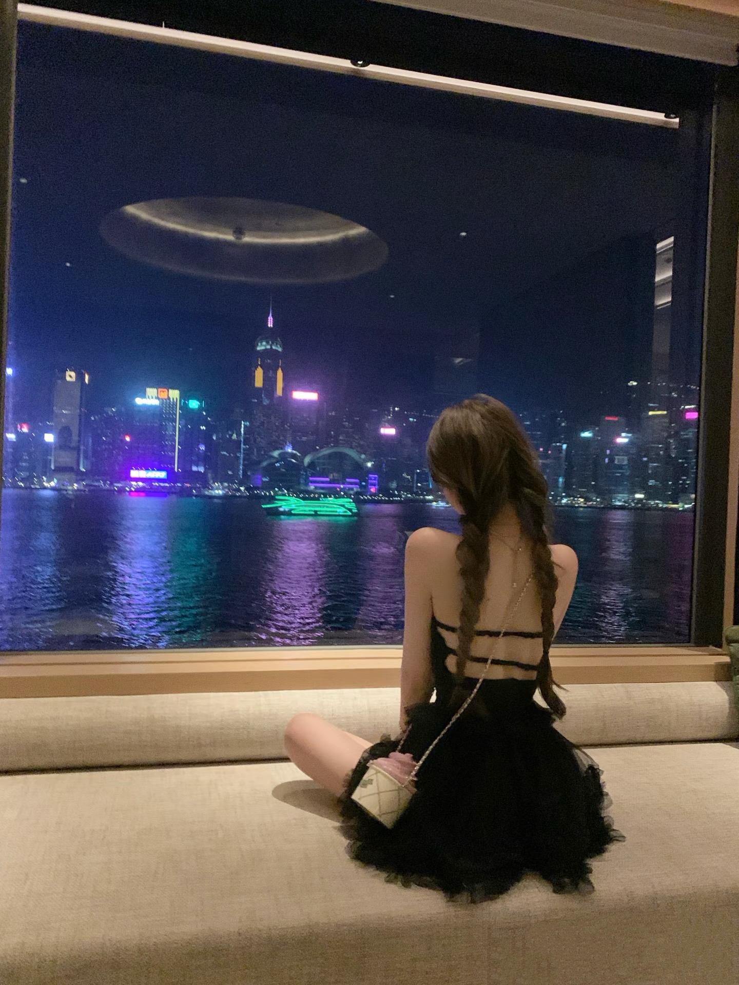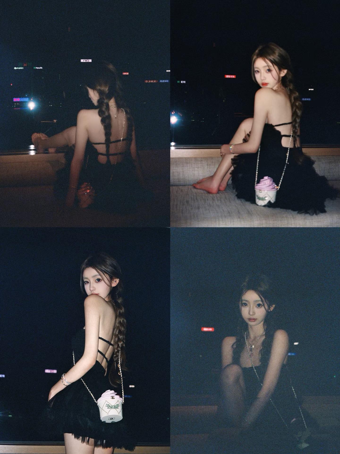 她住海景房拍美照,穿露背裝扎麻花辮,看背影就像是十八九歲的小姑娘。揹着的冰淇淋包包,就得幾個W。