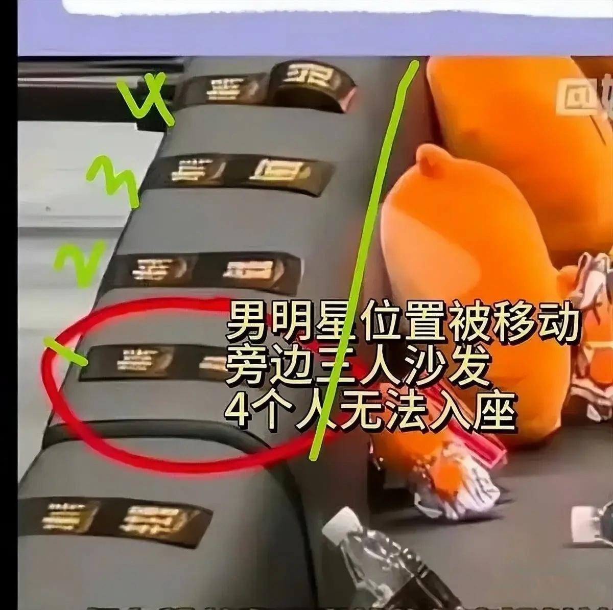 肖戰的名牌被移動後,三個人的沙發位要坐4個人,也導致肖戰沒有辦法入座。