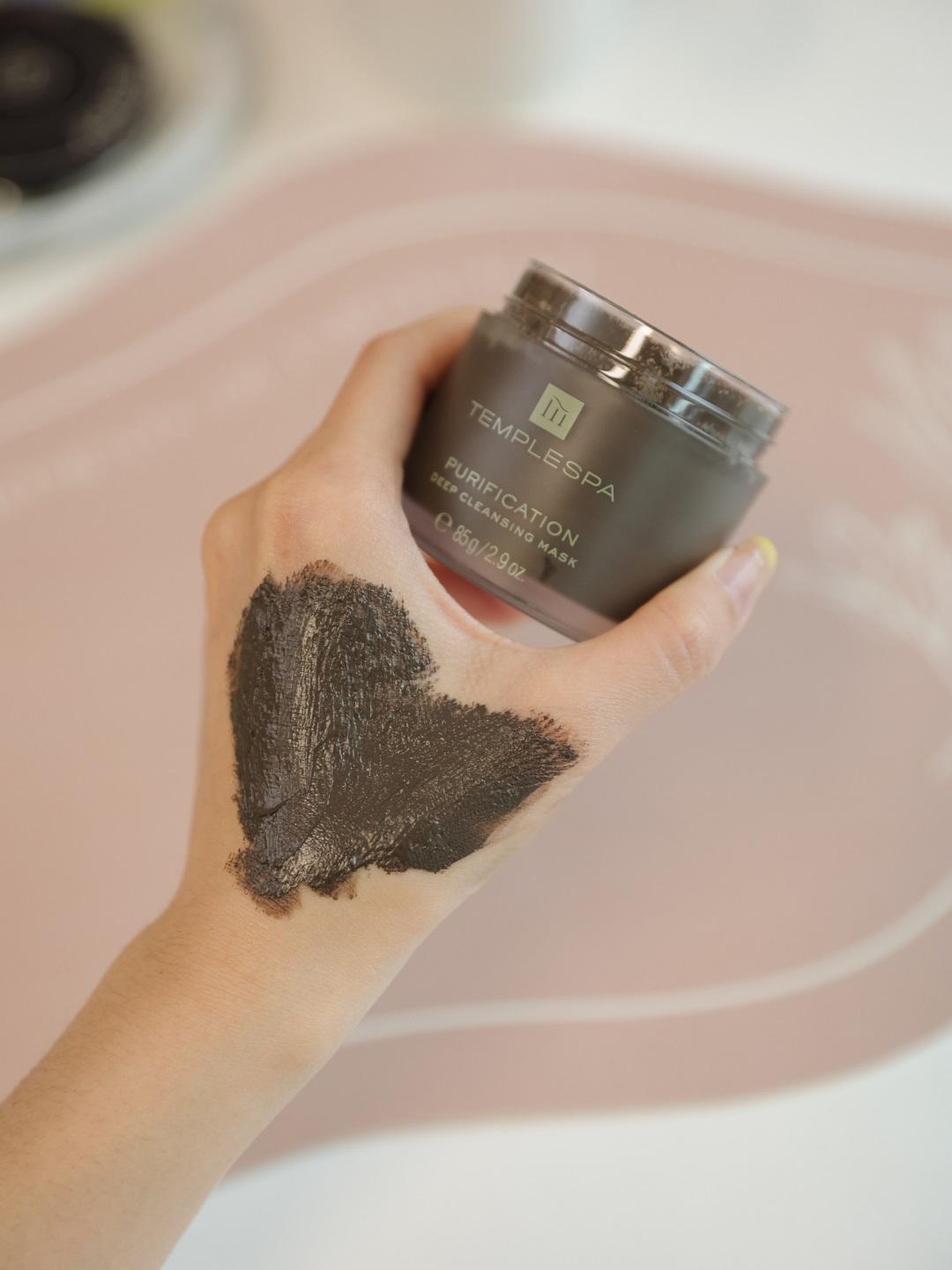 我用過不少清潔泥膜,很多敷久了就幹到結塊、掉渣,像糊水泥一樣。但Templespa這款完全不會!全程沒有緊繃感,一直是潤潤的。▼