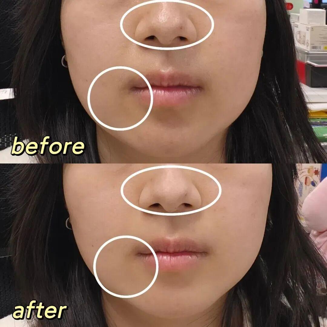 前後對比還挺明顯的:素顏時用它薄薄壓一層,就像加了層自然的柔光濾鏡,膚色均勻不少,鼻翼的毛孔也隱形了很多。▼