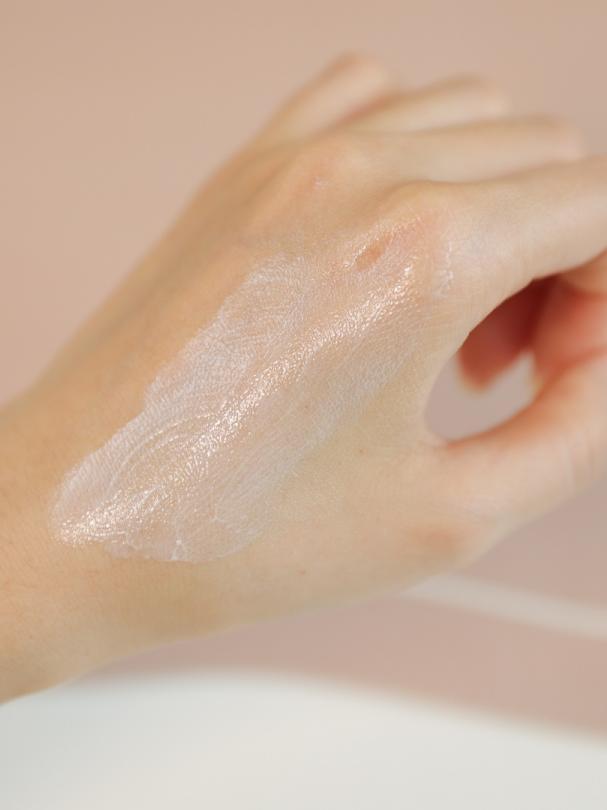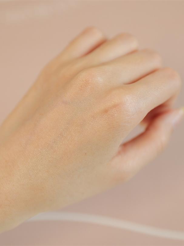 質地很輕盈,塗上去薄但很潤,一點都不厚重黏手,嗖嗖就吸收了。乾爽的同時,又感受到薄薄的油膜包裹的安心感~▼