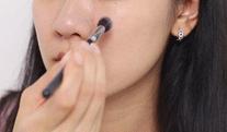 用火苗刷或暈染刷取粉,垂直於面部,輕輕把粉“戳”進毛孔明顯的區域(比如鼻翼、面中),這樣填毛孔效果更好,瞬間還原細膩膚感。▼