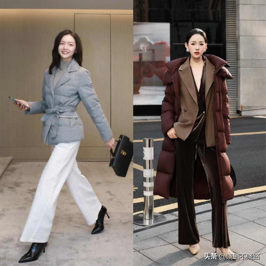 而其實基礎色系的搭配組合,在這個時候就是會更加趨向於穩定感一些的,雪峯羽絨服它的穩定度會比較高一些,從版型以及用料,還有就是打搭配的場合來看。那麼整體的組合搭配,建議大家都選擇簡約經典款式的羽絨服結合輪廓和線條的走向,很流暢利落,好看的褲子或者裙子。