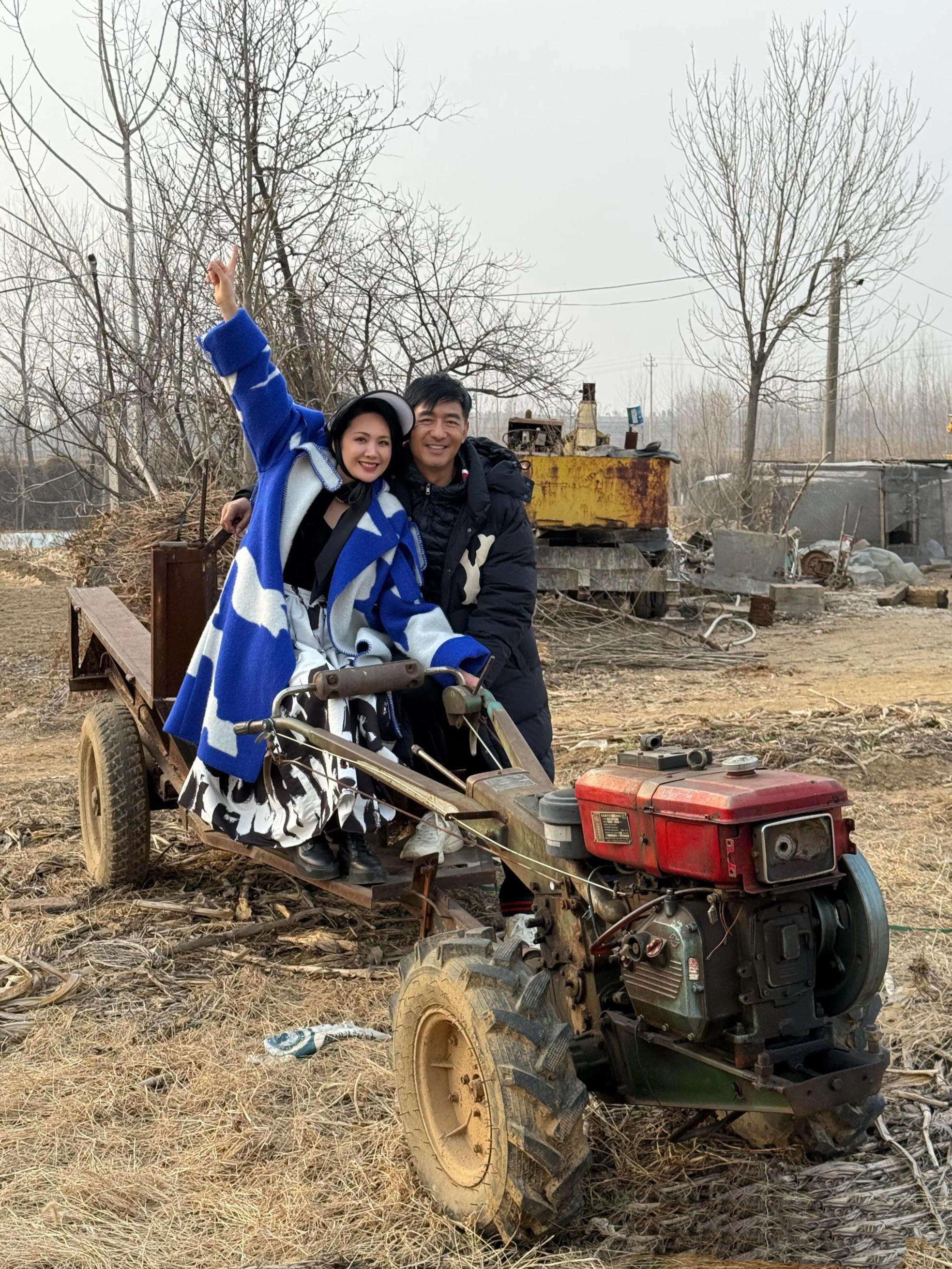 帶着漂亮的老婆回村裏,郭曉東臉上也是風光無限。他們在村口拍照,背景裏是一棟棟鄉村平房,還有光禿禿的枝丫。
