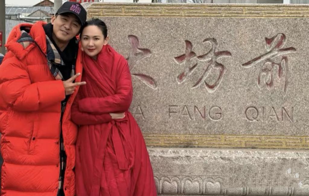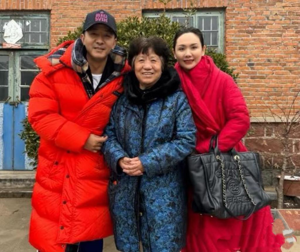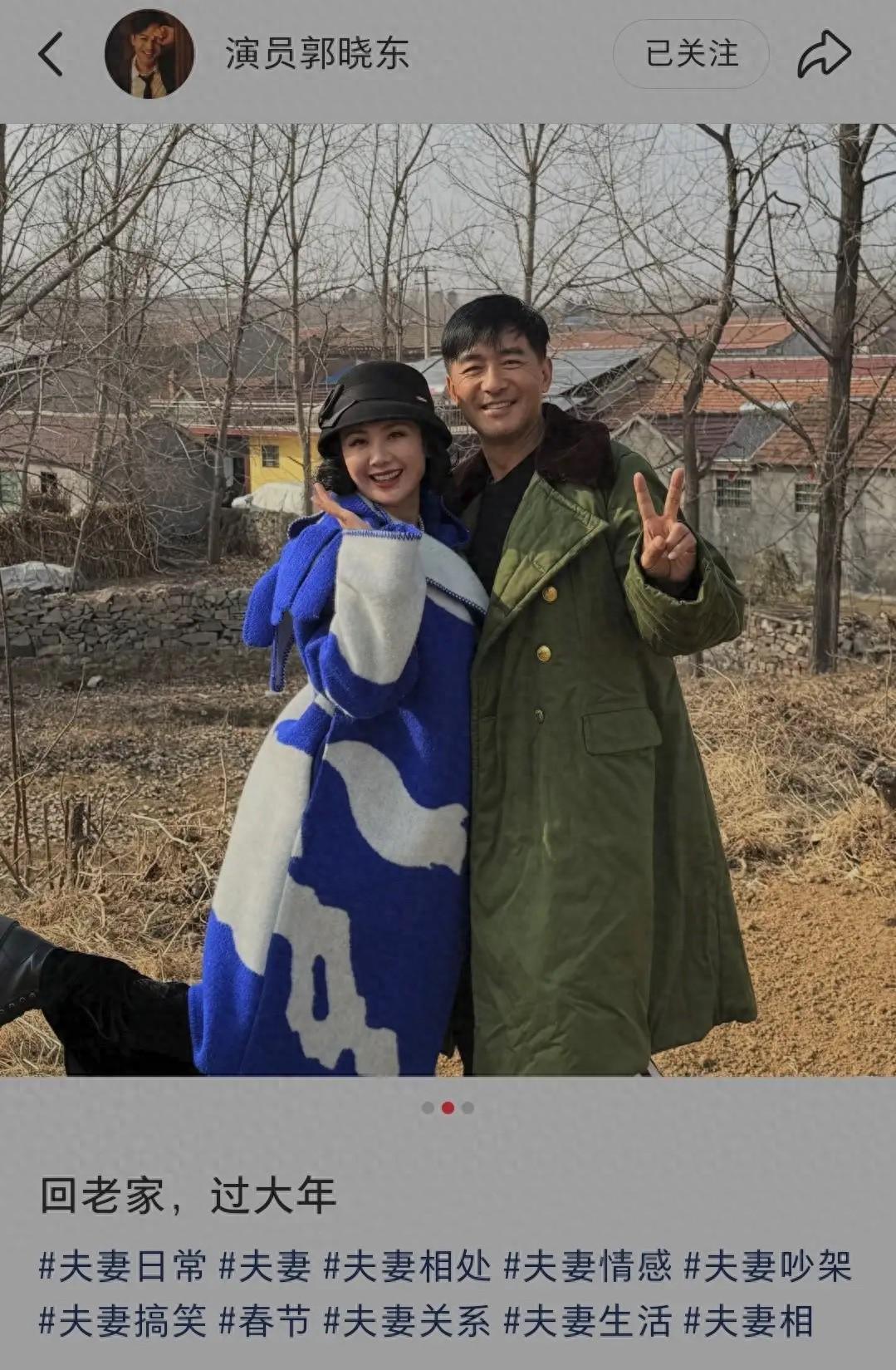 郭曉東夫婦回老家,穿軍大衣滿是褶子土又帥,程莉莎大衣配裙抗凍