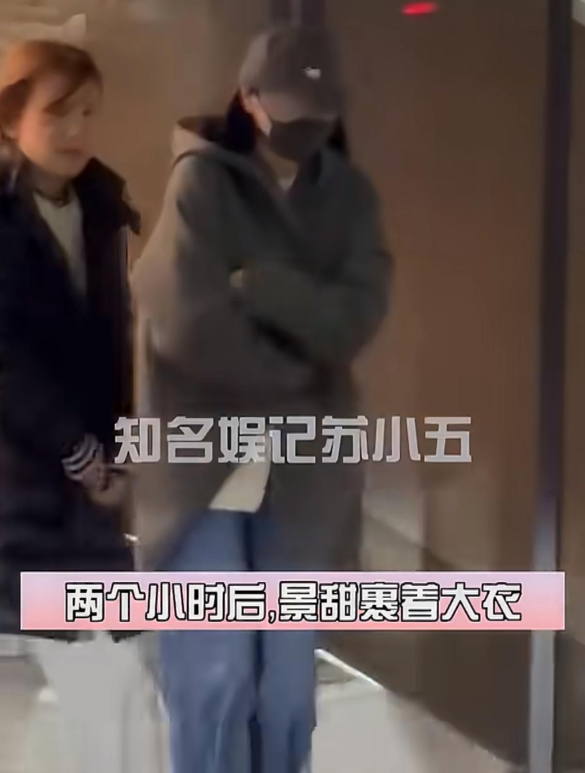 當天景甜的狀態不是很好,弓着身子、雙手抱懷,看到有媒體在拍,也沒有換一個動作。