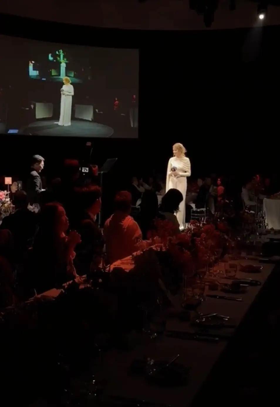 以長桌晚宴+中央舞臺的方式,整場晚宴包括項目宣講、祝酒儀式、商務交流環節。李家誠夫婦作爲壓軸主賓,主持人鋪墊後登臺。