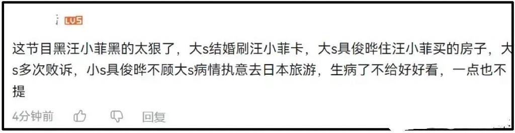 還是有不少清醒的網友,認爲這節目黑汪小菲太狠了。大S結婚刷汪小菲卡,住着汪小菲買的房子,和汪小菲的官司還多次敗訴,似乎都被忘記了。