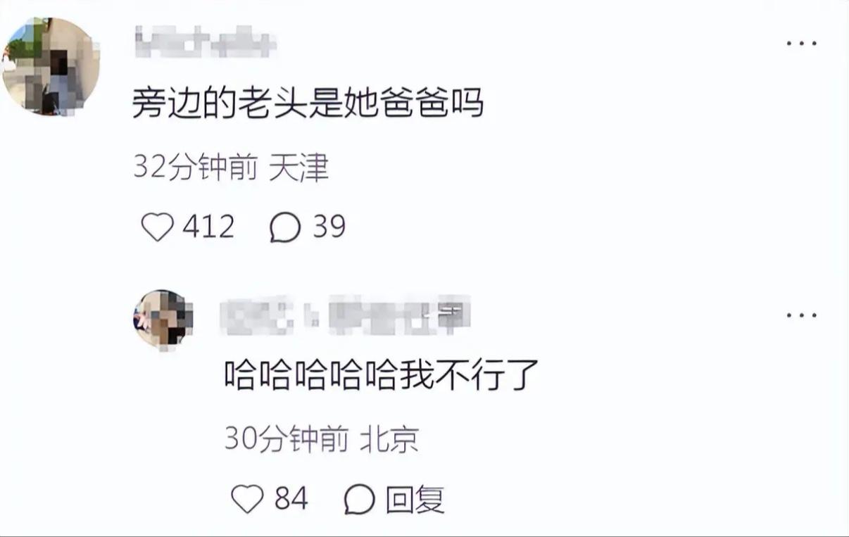 照片發出來的時候,有網友莫名其妙的問:旁邊老頭是她爸爸嗎?