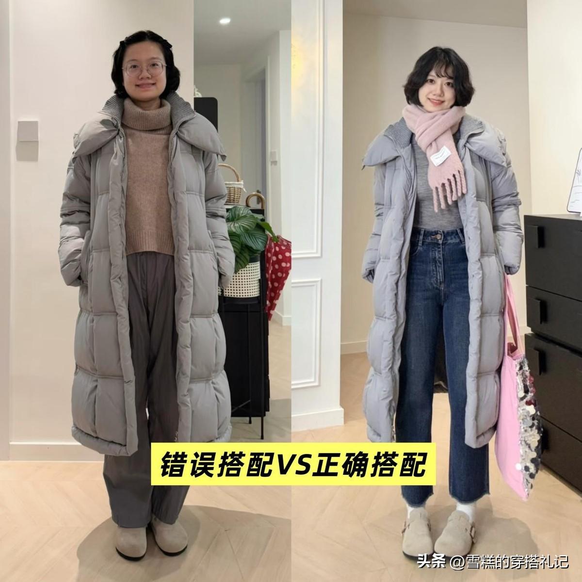 同一件衣服,錯誤搭配VS正確搭配效果天差地別!所以說我們缺的根本就不是衣服,而是正確的搭配思路,就好比灰色長款羽絨服,就不能配太鬆垮的內搭,換成修身一點的打底衫,在藉助配飾豐富造型,纔會更時髦。