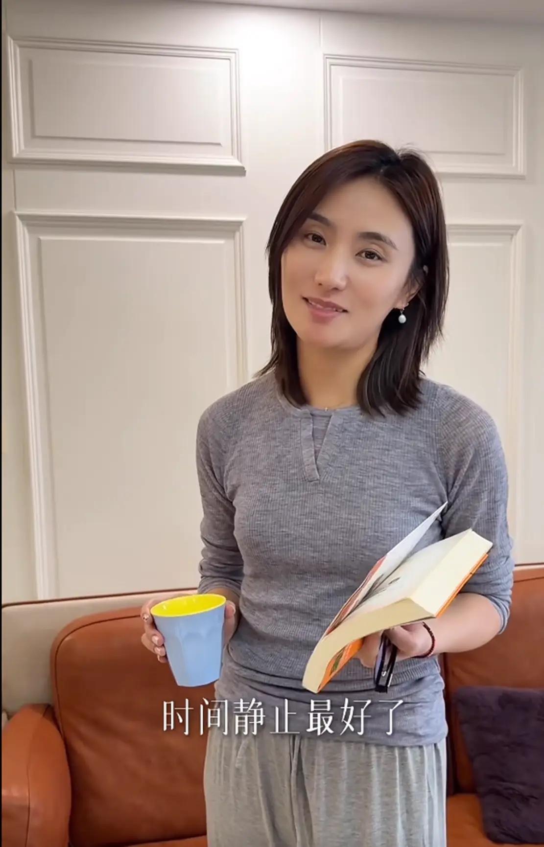 金喜在家中的打扮比較休閒舒適,一件修身的灰色針織衫、配了相對寬鬆的闊腿褲,她身材挺拔曼妙。