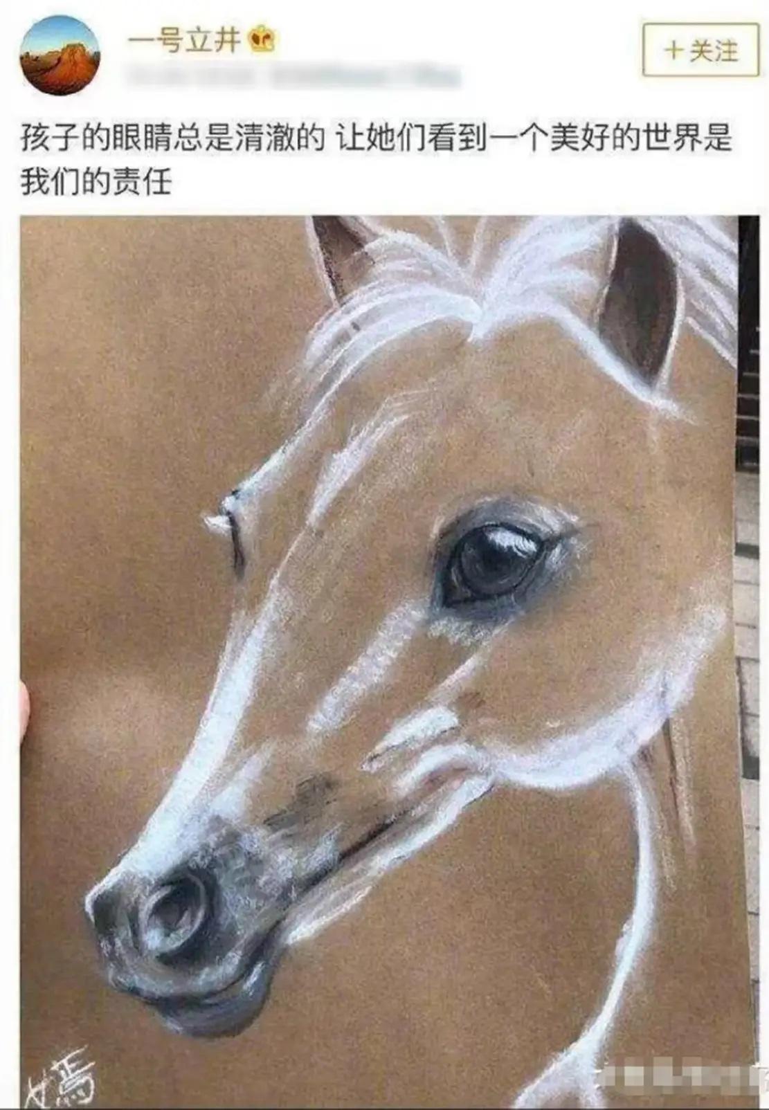 李嫣這幅畫,當初也出現在李亞鵬的社交賬號上。他說:孩子的眼睛總是清澈的,讓她們看到一個美好的世界是我們的責任。