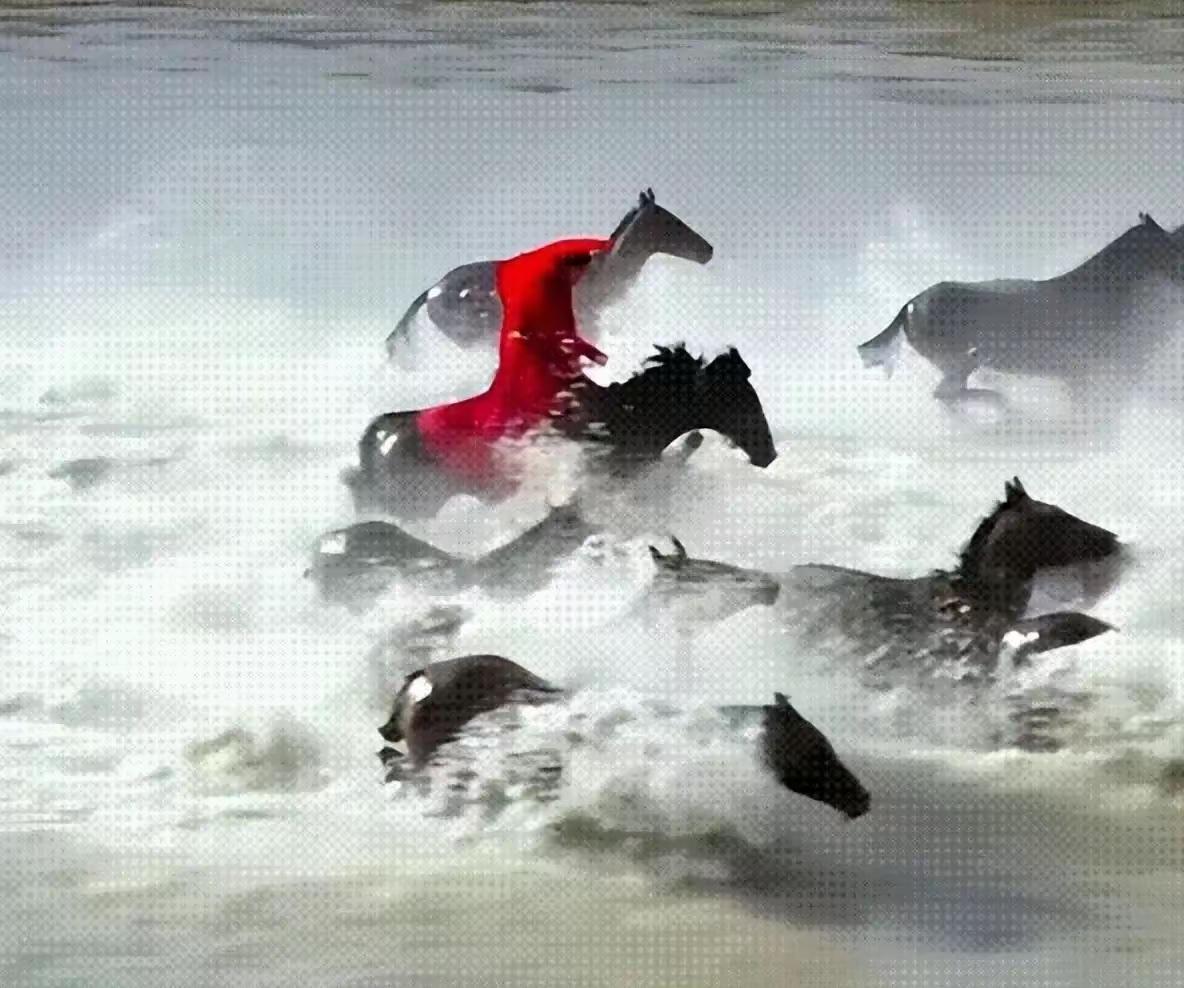 起初賀嬌龍嘗試着控制馬匹,可最後發現無濟於事。賀嬌龍只能緊握繮繩,壓低自己的重心,但在一個轉彎的時候,賀嬌龍瘦弱的身軀還是被甩了出去。