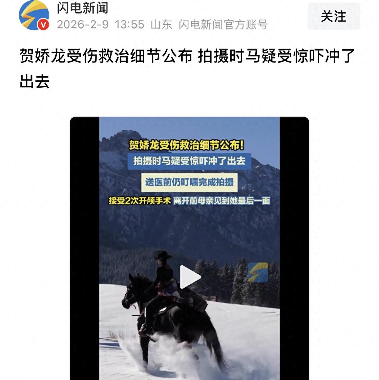 2月9日,新疆日報發佈文章《摯愛人間一抹紅——追記實幹爲民的好乾部賀嬌龍》,文中講述了賀嬌龍受傷的過程,以及救治細節,也解開了衆人心中疑惑。