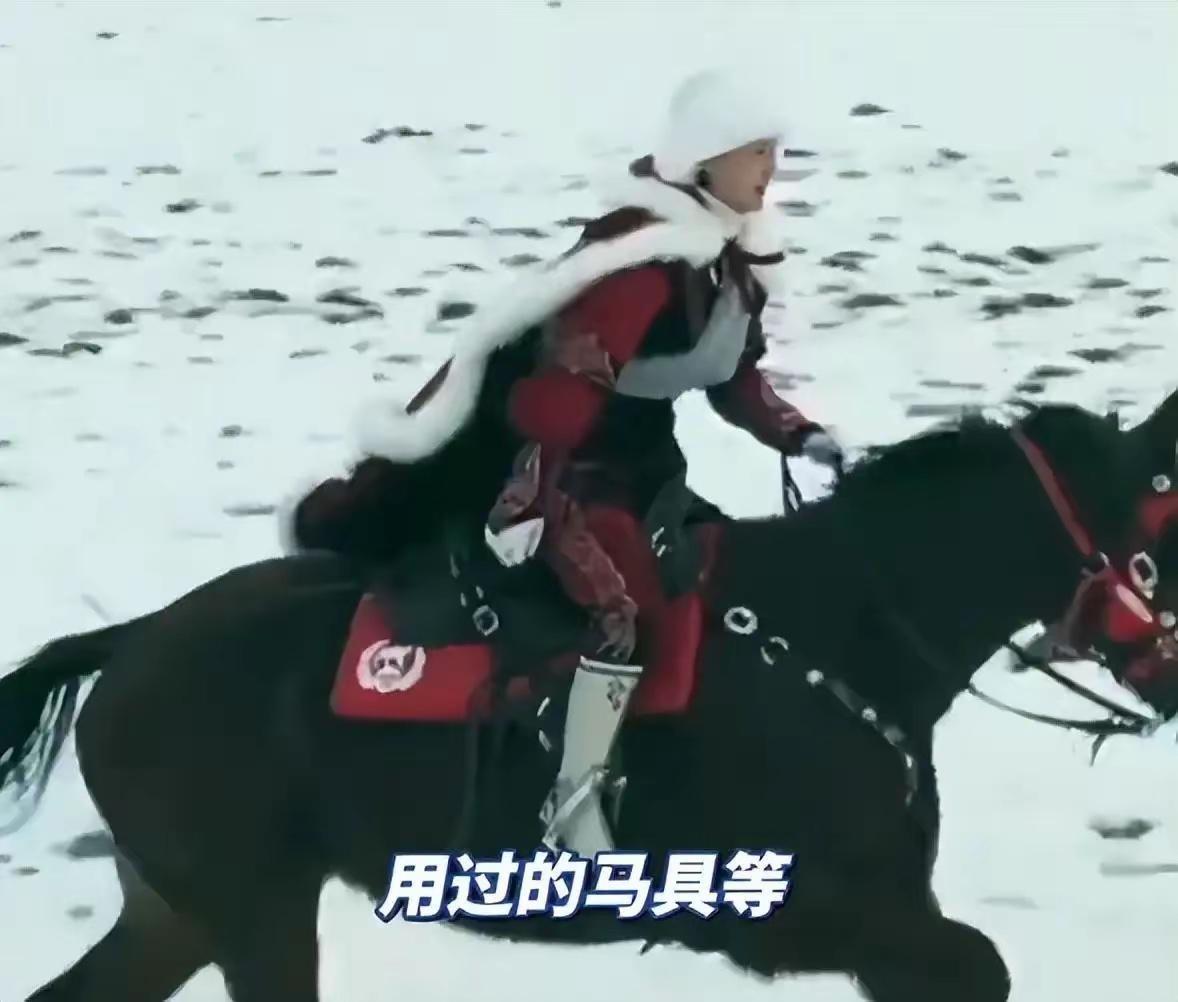 周圍是一片收割後的玉米地,覆蓋着一層白雪,還是雪地策馬的畫面。賀嬌龍正在配合着攝影師拍攝近鏡頭的畫面,這時候意外發生了。