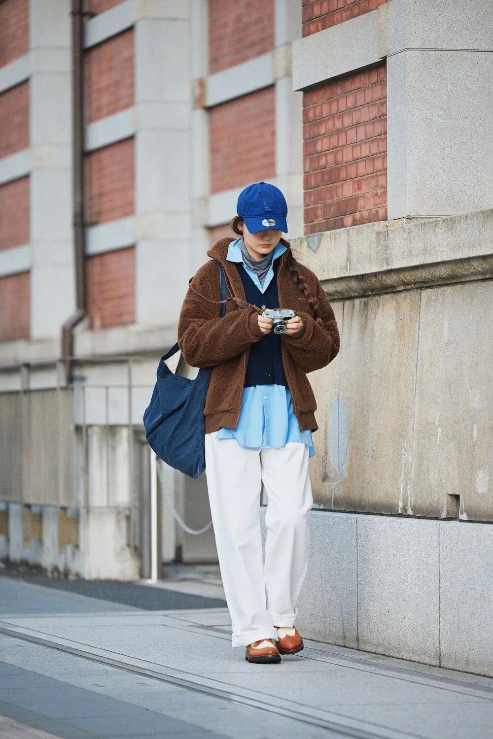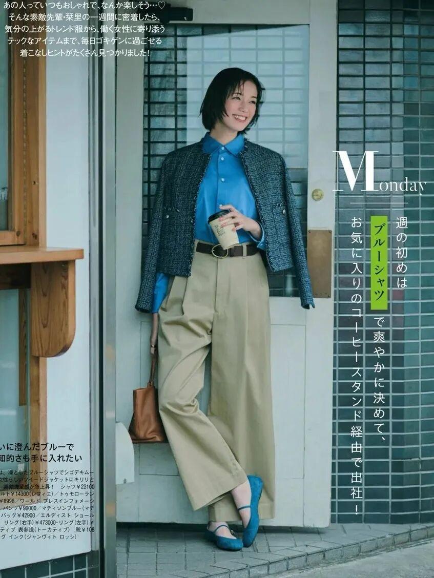 還有一個加分點:對亞洲人很友好的藍色上衣,和卡其色褲子是絕配,一組經典又顯乾淨的配色,很多日雜都很愛用。▼