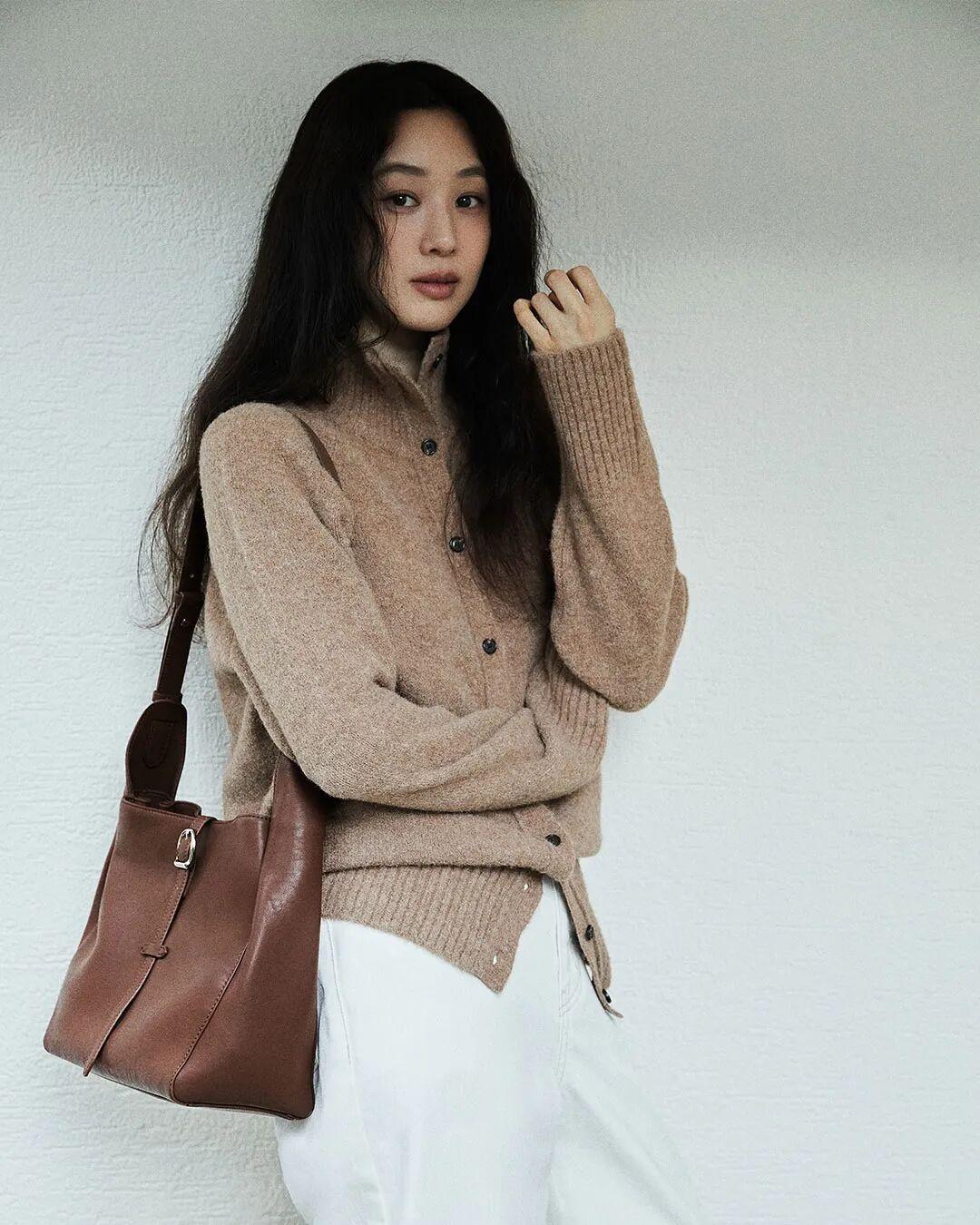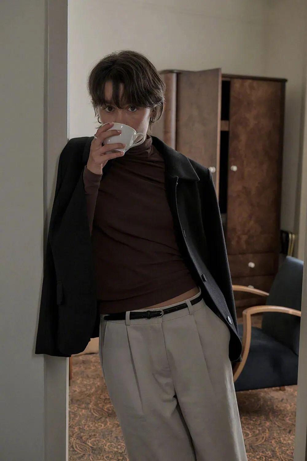她日常就很愛用一條偏直筒的牛仔褲去搭配——無論是厚重的長大衣,還是容易顯臃腫的拉毛毛衣,一配上牛仔褲,立刻顯得鬆弛又精神▼
