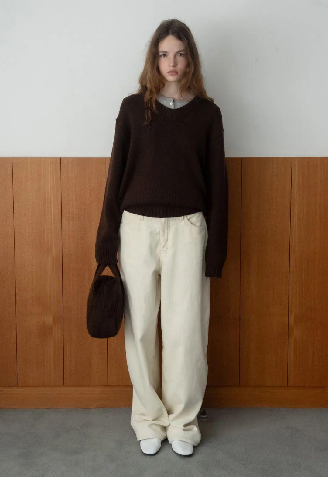 顏色上,可以避開冷調的純白色,選擇米白、象牙白這類暖調白。它們更柔和,視覺上不刺眼,而且相對更耐髒。除了牛仔褲,有不少羊絨羊毛褲都是這種顏色,很適合現在的季節。▼