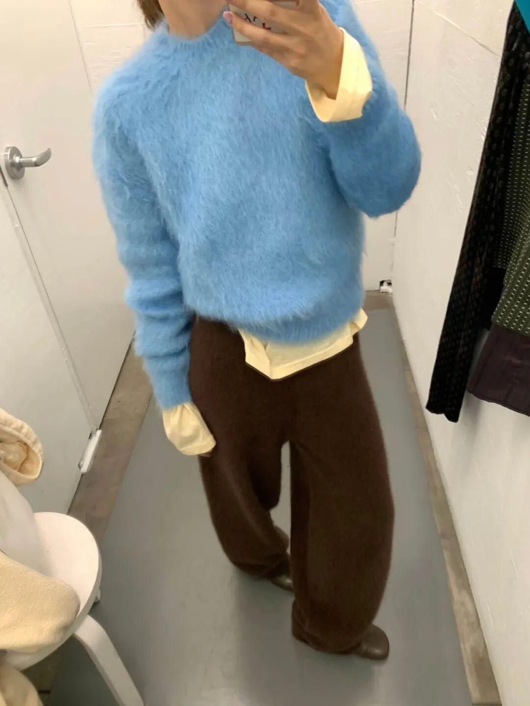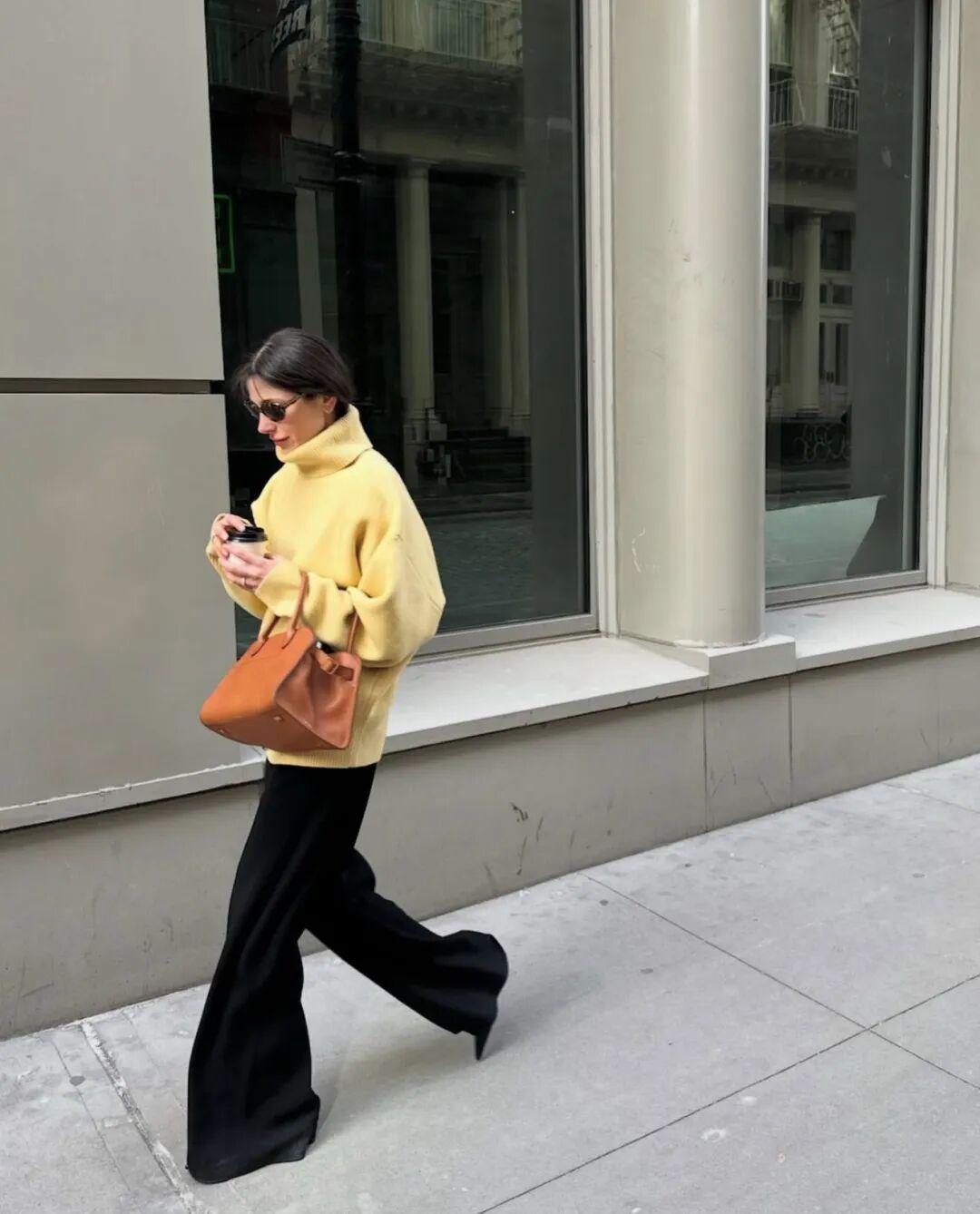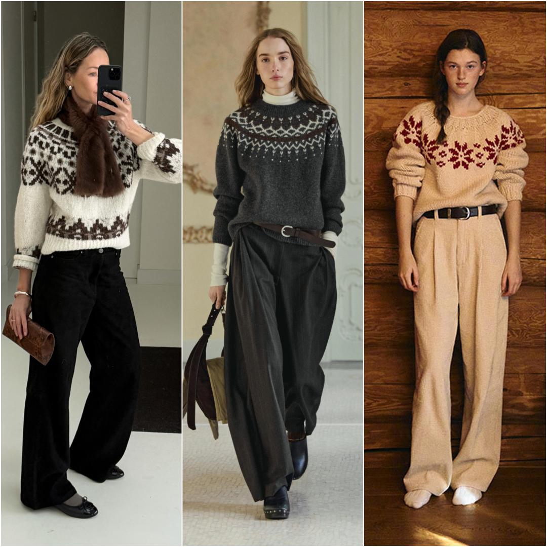 露膚度極低的小領口和高領毛衣,尤其是很適合過年穿的費爾島毛衣,大部分款式都還挺容易顯胖的,不少牌子的官方搭配就是西褲。▼