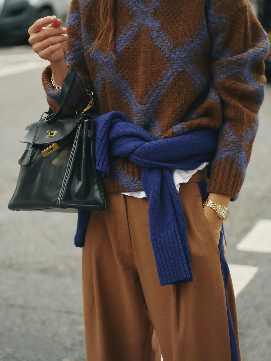 各種喜慶鮮亮的毛衣,也很適合用西褲來平衡壓制一下“豔光”,提升一下質感。 ▼
