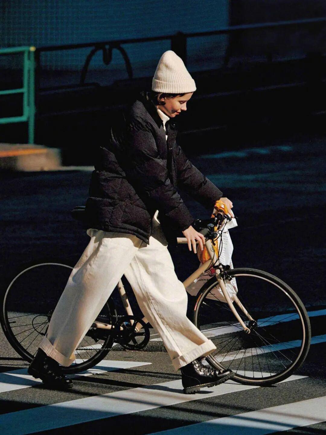 如果你穿不了前面說到的窄窄的牛仔褲,一條垂墜西褲是更友好的選擇,裏面藏一些很厚的打底褲都沒問題。