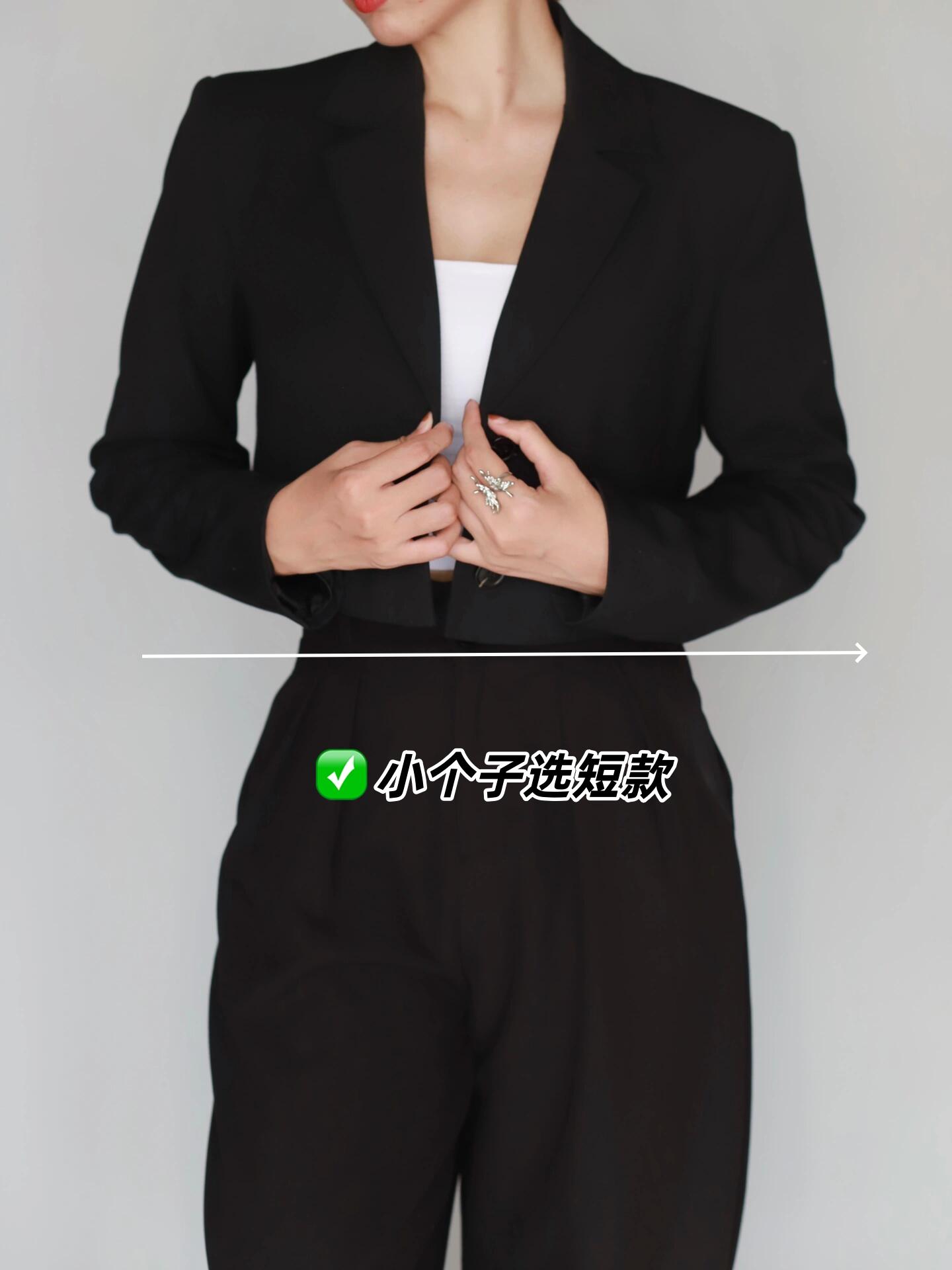 小個子選短款:衣長在腰線或剛好蓋臀,配合高腰下裝,腿長一下子就被拉出來。