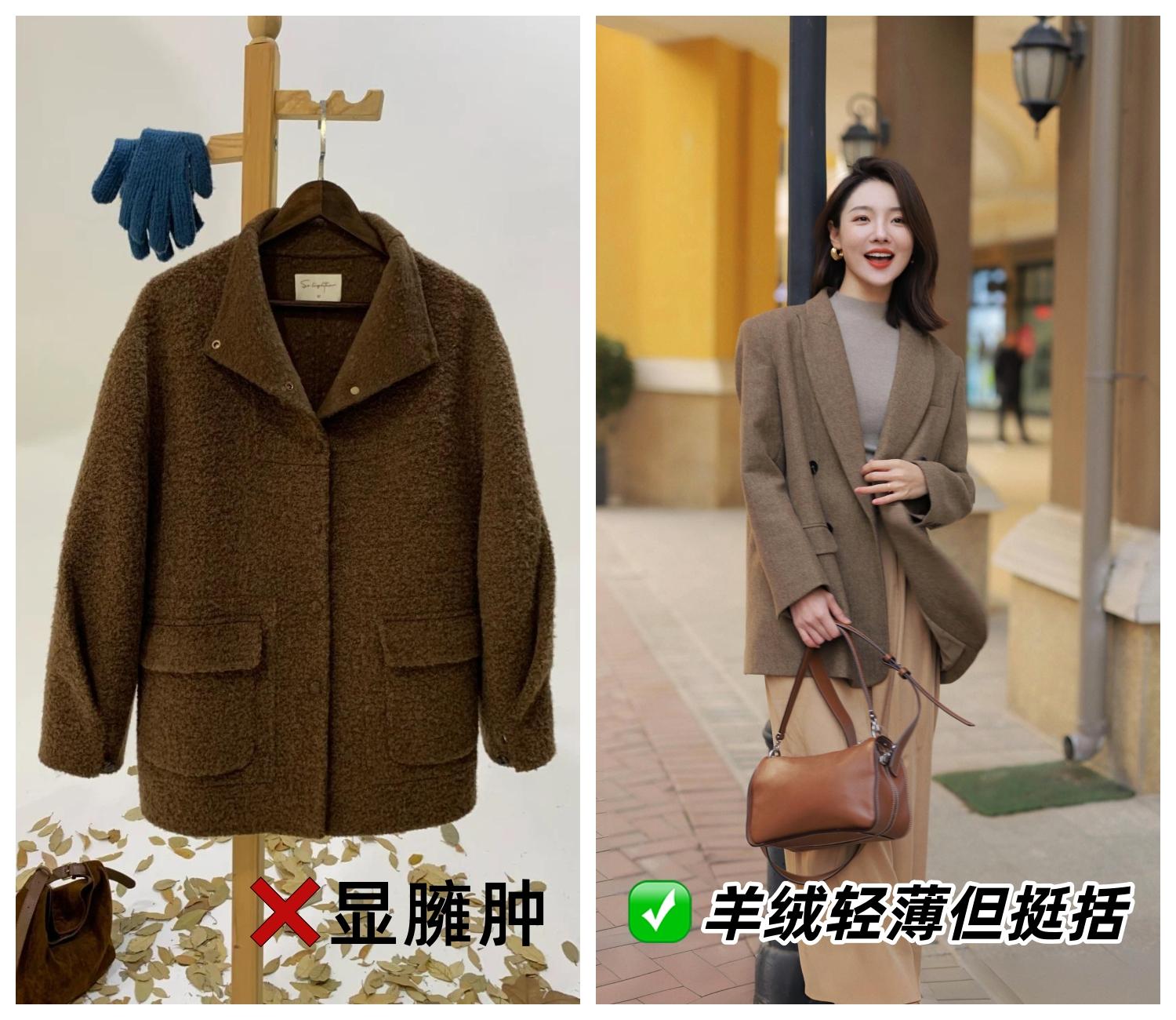 避免廉價感:劣質的粗花呢、易起球的面料、走線粗糙,都會拉低檔次。