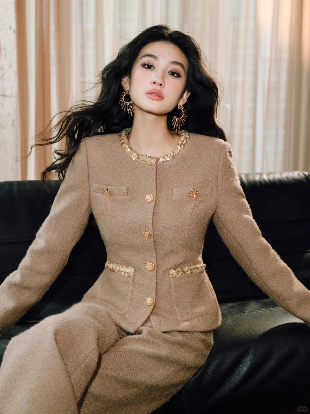 小香風外套因爲粗花呢、金屬扣、編織細節,自帶“貴氣感”,但選不好容易顯老氣。中年女性想穿得高級又不容易踩雷,可以從選款和配色上下功夫。