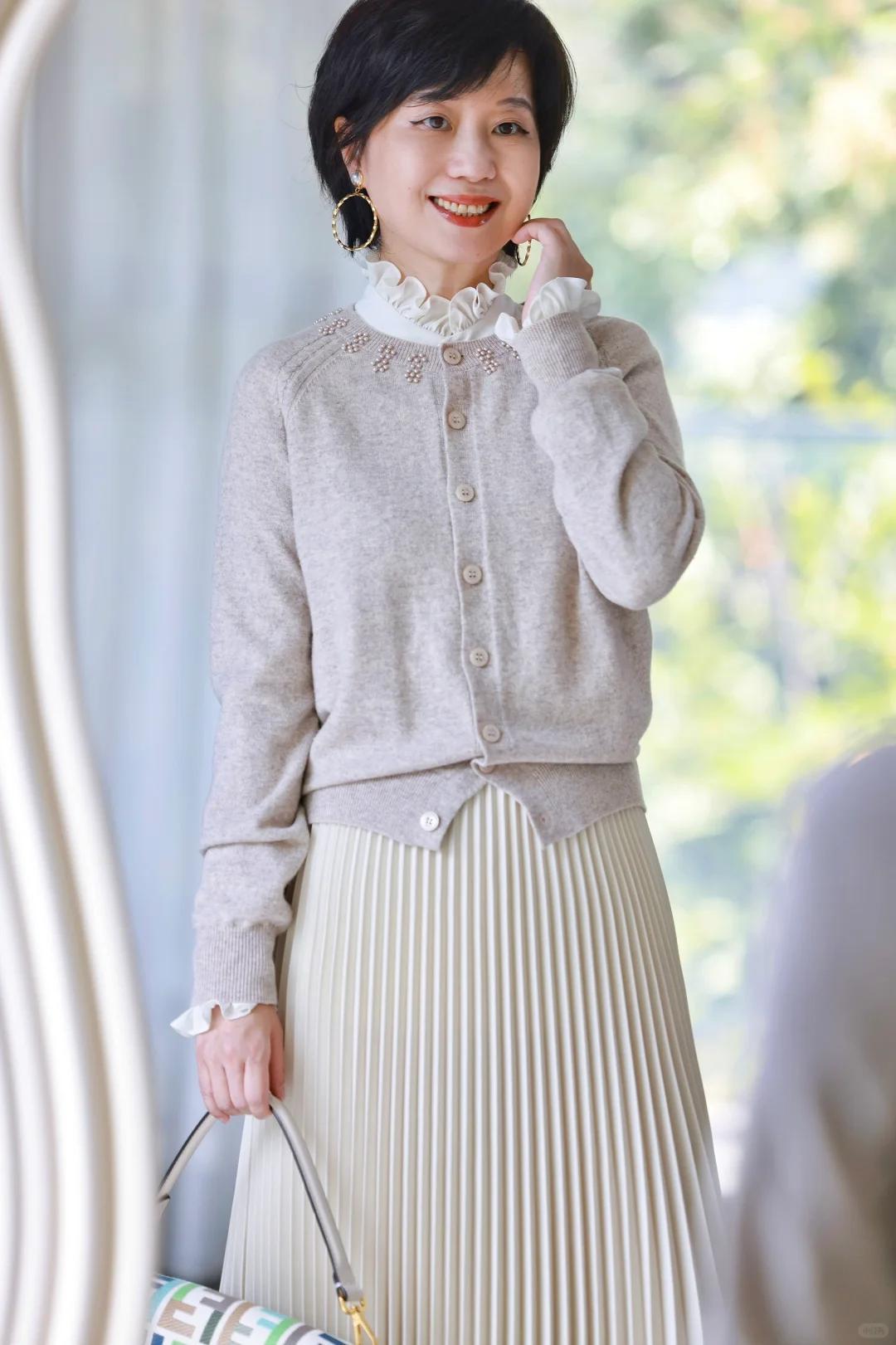 針織外套是中年女性的“老友型單品”:不挑身材、自帶溫柔濾鏡,早春搭薄一點的內搭,剛剛好抵得住早晚涼意,中午也不悶。
