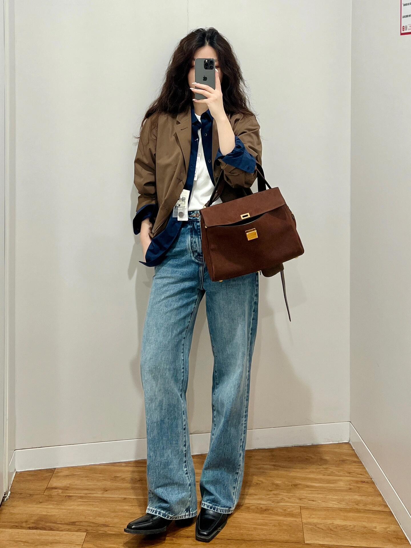 小技巧:外套敞開穿時,把內搭扎進褲腰或裙腰,腰線一出來,比例立刻好看很多。